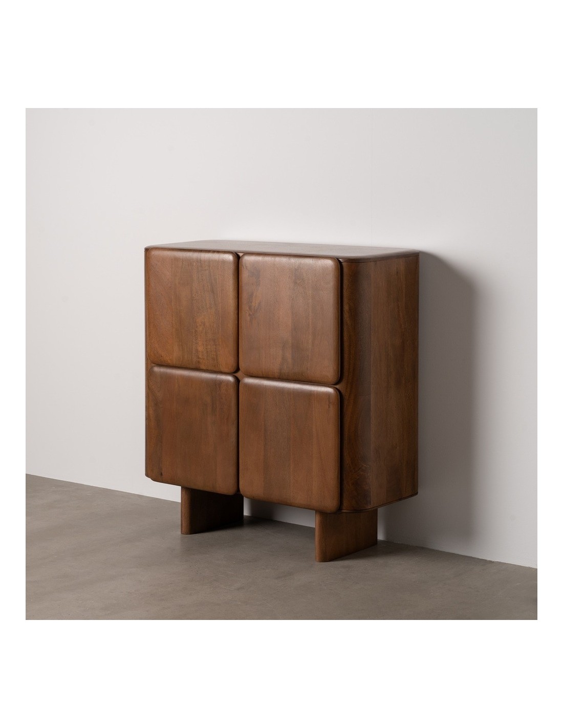 Material: madera de mango. Puertas: 44,5x44,5cm. Altura patas: 20cm.