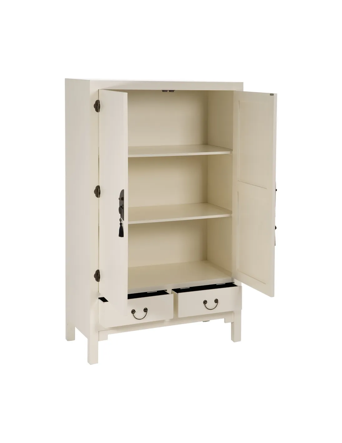 Armario Oriental MING 100 x 160, blanco, 1 puerta y 2 cajones.