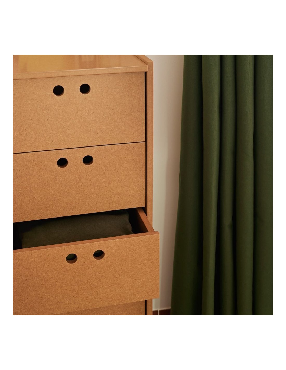 La ausencia de adornos excesivos, la modularidad y los materiales seleccionados permiten que esta cómoda combine estética contemporánea con funcionalidad práctica.
