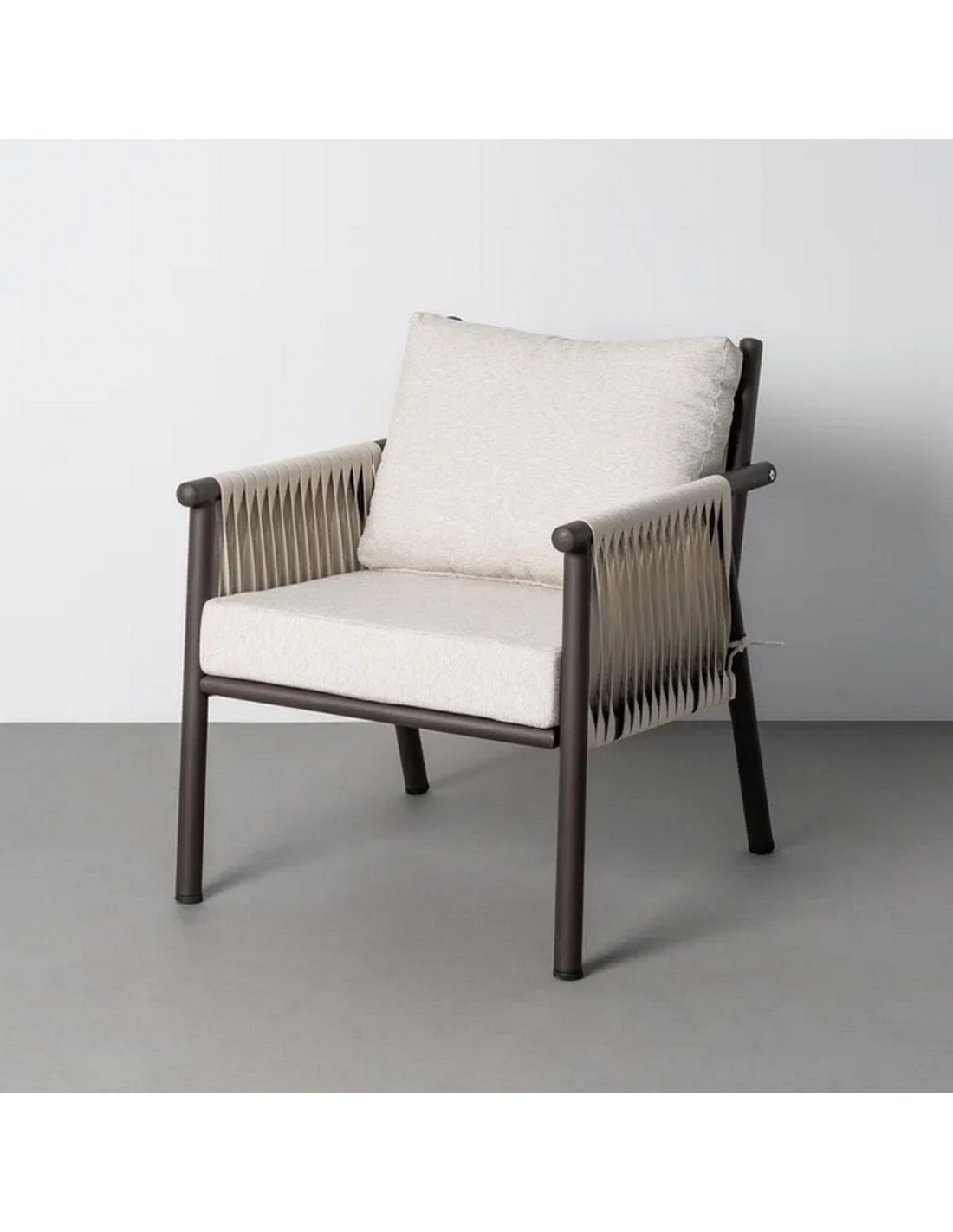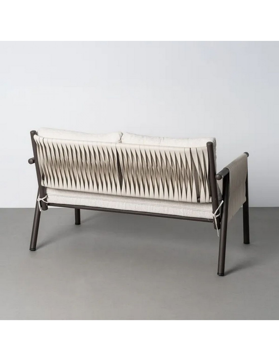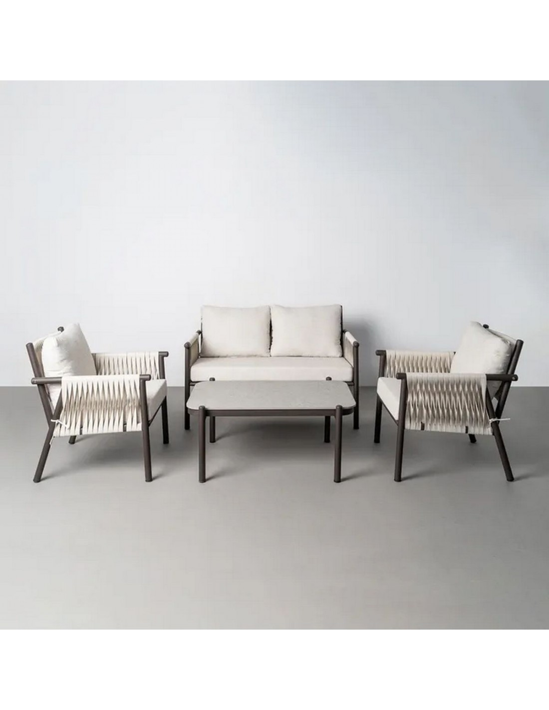 El diseño del conjunto CALA está pensado para crear ambientes exteriores elegantes y acogedores. La combinación de estructura metálica con ratán sintético aporta un equilibrio entre estética moderna y materiales duraderos.