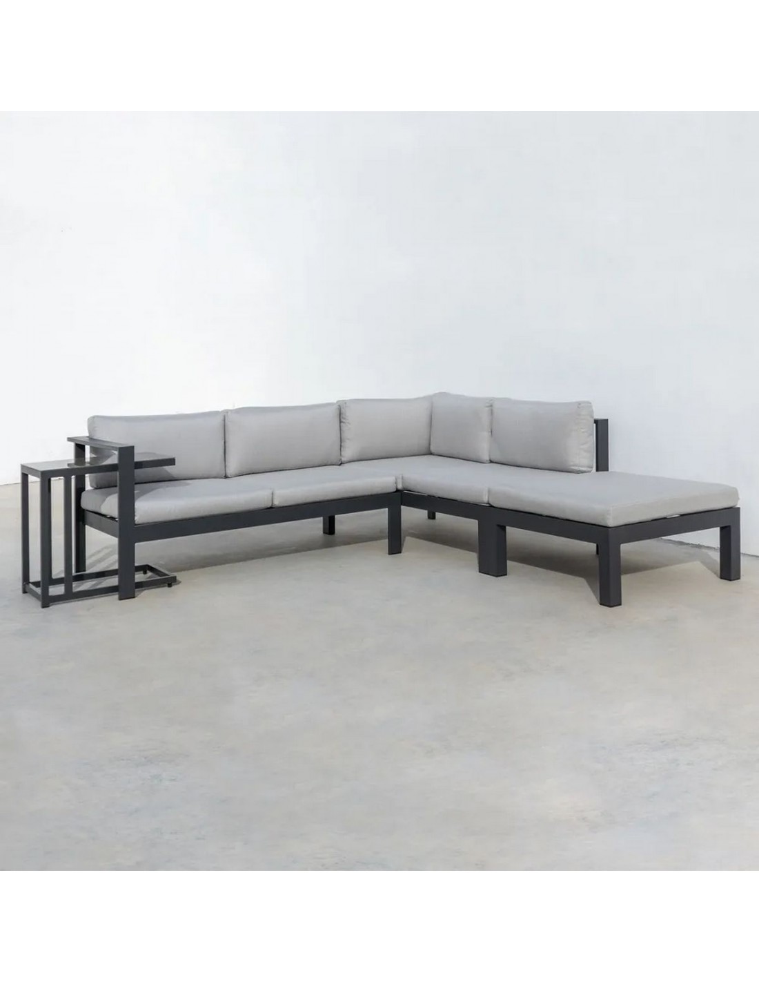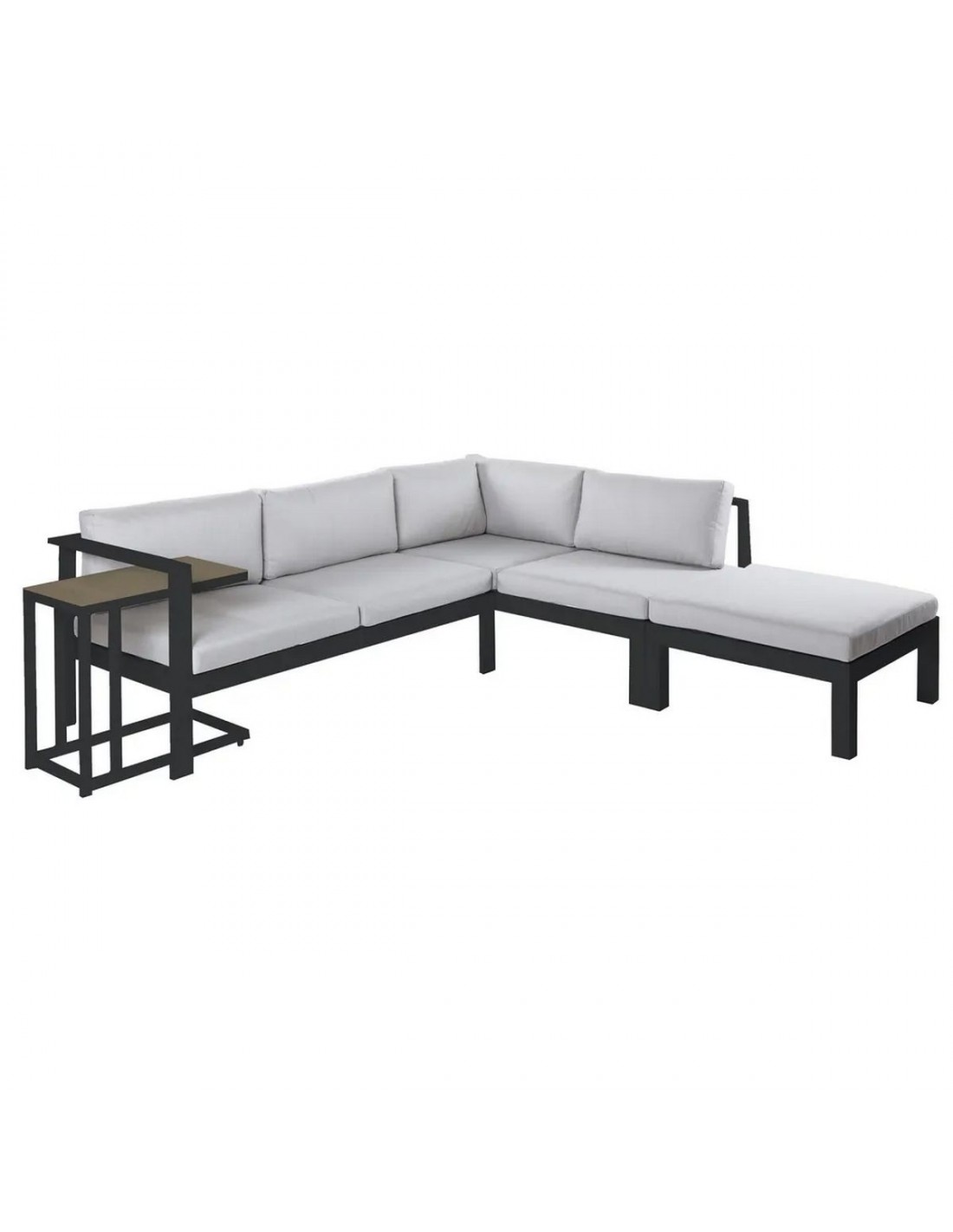 Su estructura modular en forma de L permite aprovechar mejor el espacio en terrazas, patios o jardines, creando una zona social perfecta para reuniones o momentos de relax.