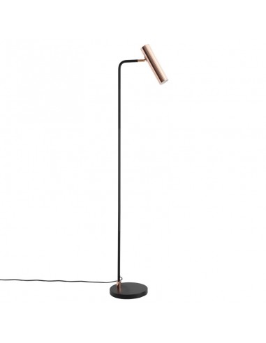 Lámpara de suelo de color negro con pantalla en color cobrizo.Las lámparas de pie son la mejor opción para poder transportarlas de un lugar a otro sin problema. Encajarán a la perfección en el salón, en el pasillo o incluso en tu habitación. Crear atmósferas únicas solo se consigue si das con la lámpara de pie adecuada.