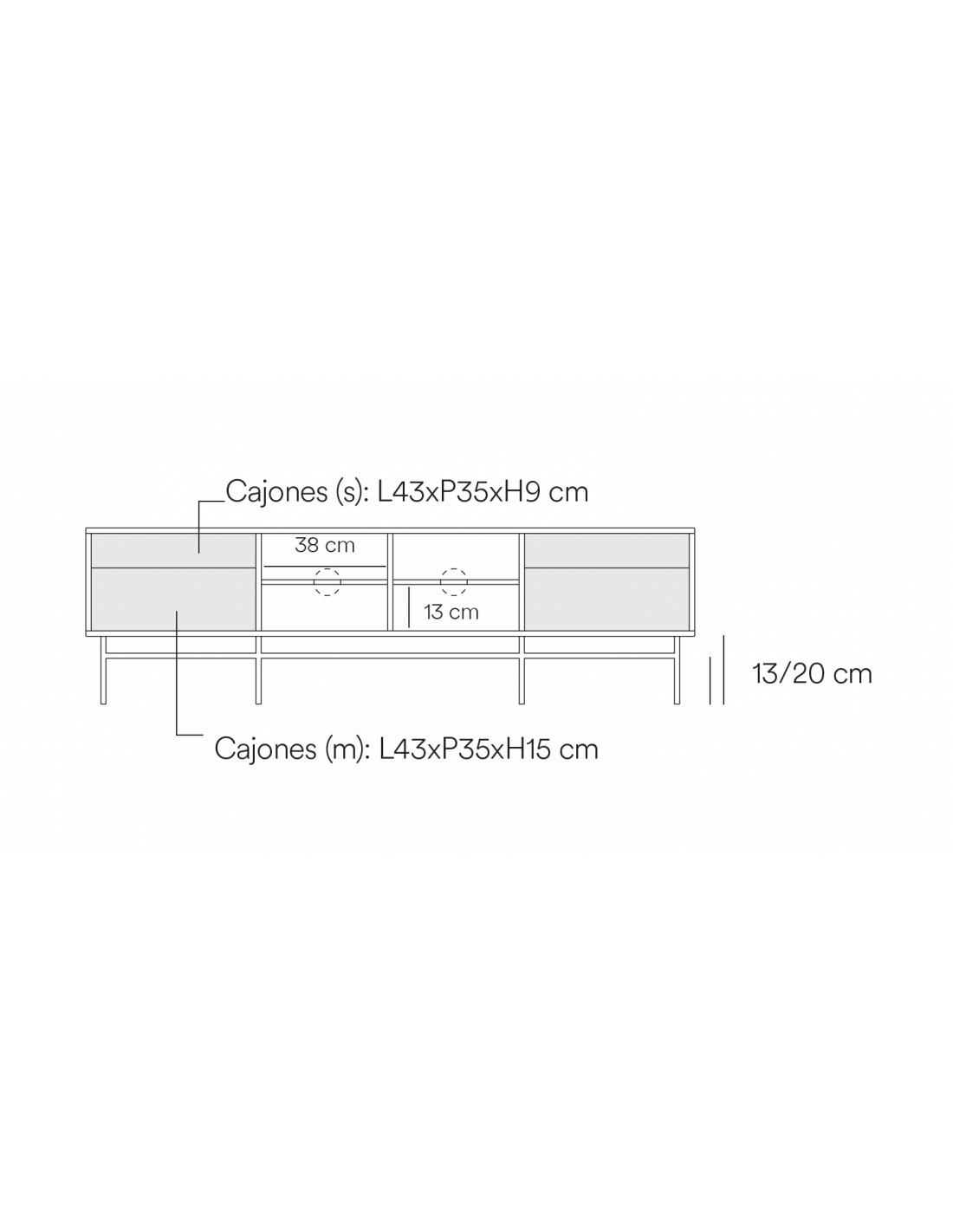 Alto: 52 cm. Largo: 180 cm. Ancho: 40 cm.
