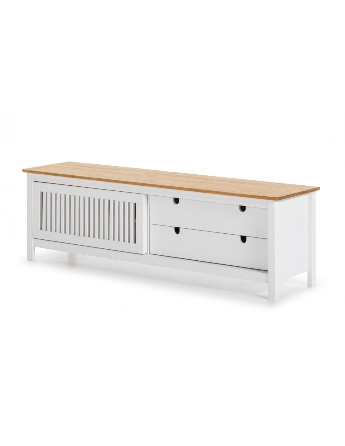 Mueble de TV colonial BRUNA 158 x 49, madera pino blanco y cera