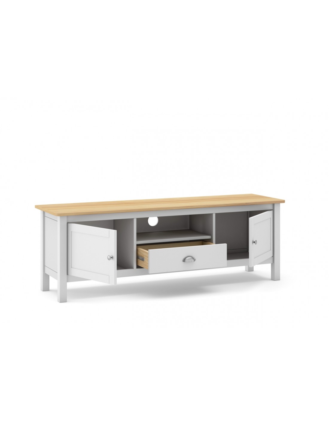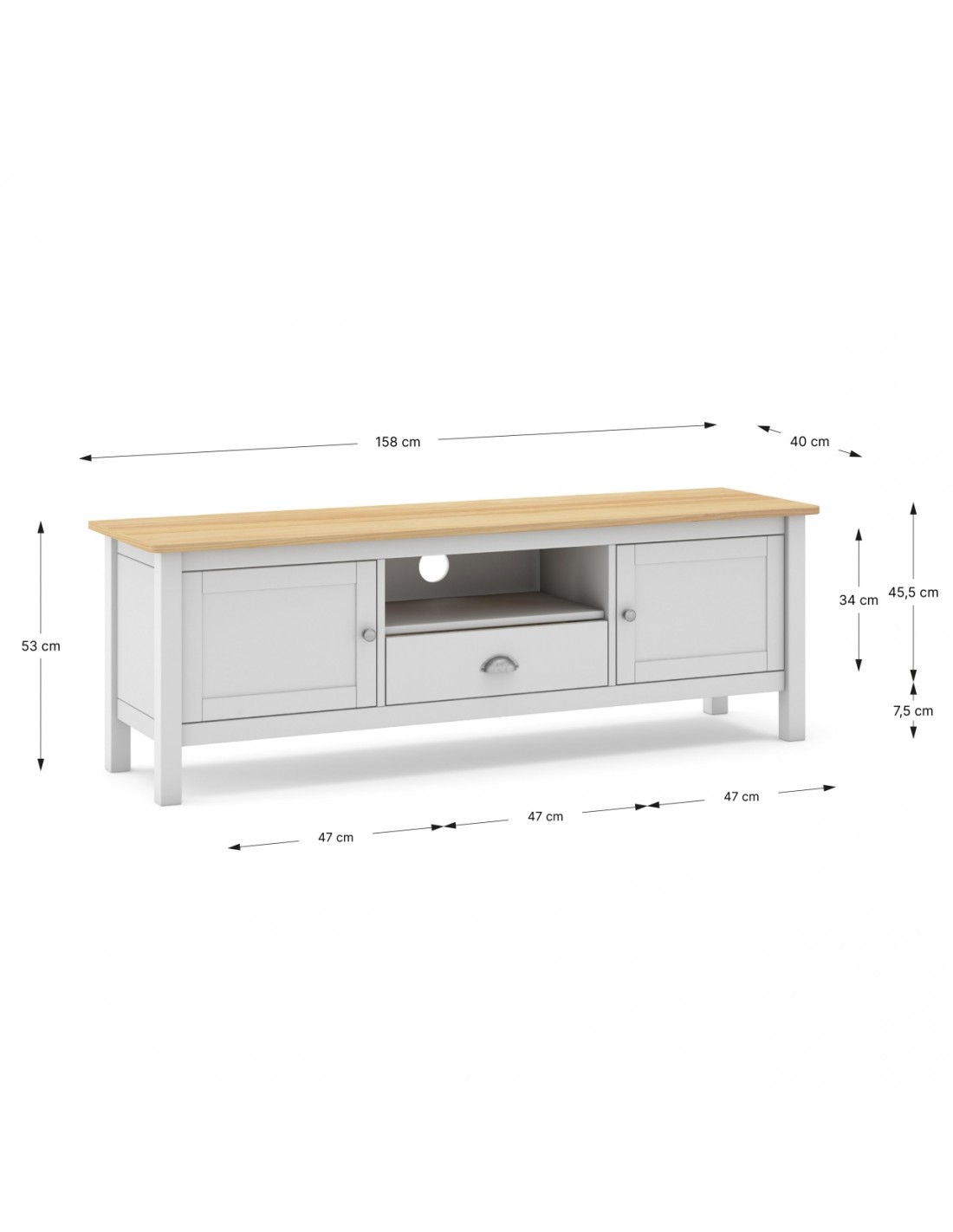 Mueble de TV mediterráneo MISTI 158 x 53, madera pino encerada y blanco