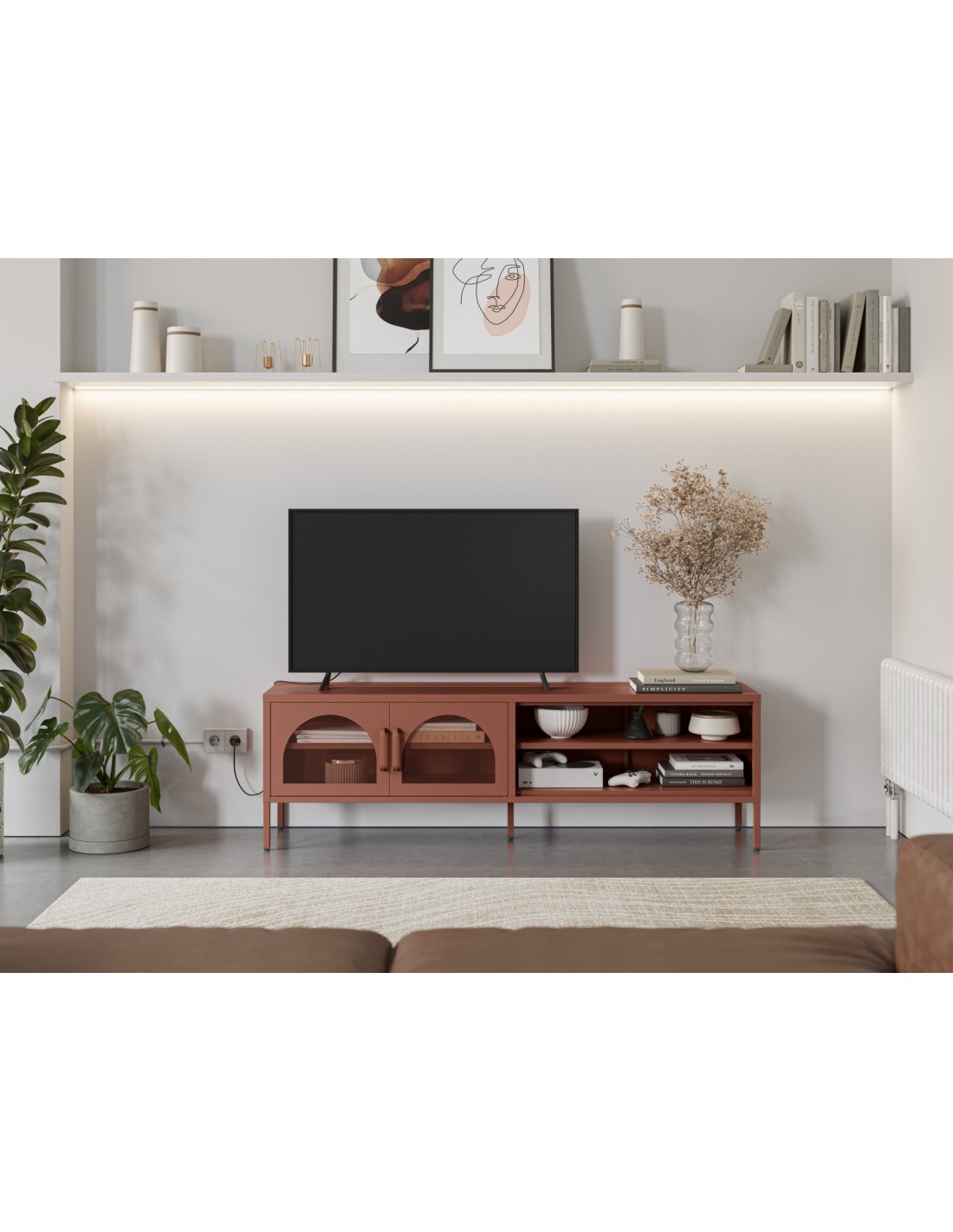 El mueble de TV Diora Terracota 160 cm con 2 puertas y 2 huecos es una solución ideal para quienes buscan funcionalidad, estilo y calidad. Fabricado en metal y con un diseño exclusivo, es el complemento perfecto para cualquier salón moderno. Y con envío gratuito y atención personalizada de CentrolandiaShop, tienes todo para comprar con confianza y sin complicaciones.