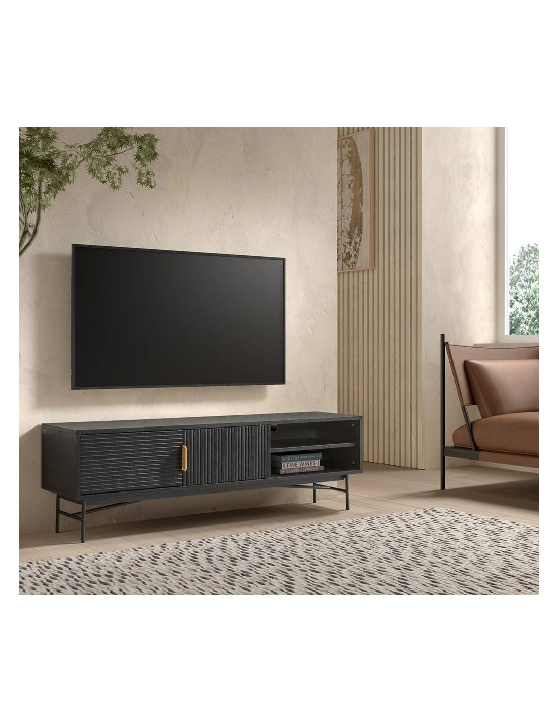 Mueble TV REUS 160 x 40, madera en negro y metal