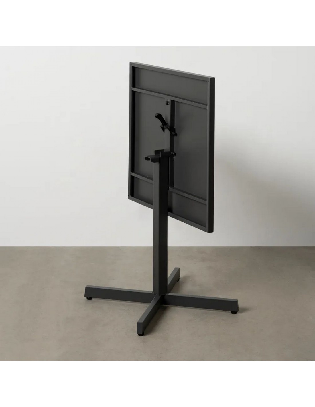 Inspirada en la tradición de las mesas auxiliares —pequeños muebles concebidos para apoyar objetos temporalmente junto a sofás, sillas o rincones— esta mesa plegable aporta una estética limpia y funcional. La forma cuadrada y el acabado antracita no solo aportan equilibrio visual, sino que facilitan el movimiento alrededor de la mesa sin esquinas que interfieran.