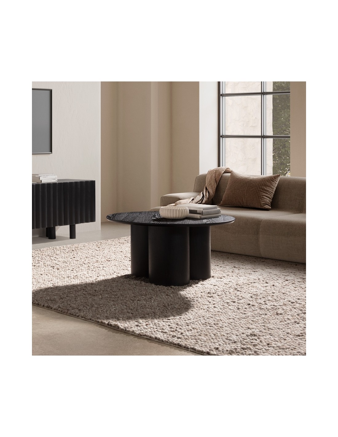 La Mesa de Centro Redonda LUA 80 cm Negra en DM Chapa Roble es una pieza diseñada para quienes buscan un equilibrio entre elegancia moderna y funcionalidad real. Su acabado negro con veta de roble crea un contraste sofisticado que aporta profundidad visual al salón, convirtiéndola en un punto focal con personalidad propia.