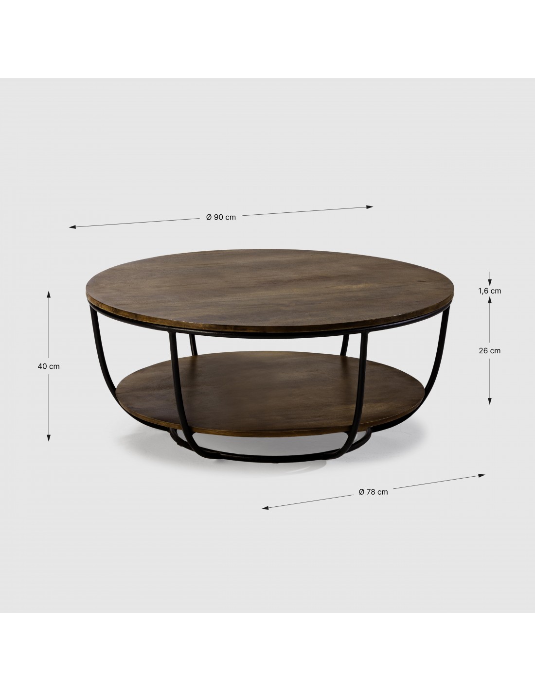 MESA CENTRO REDONDA DELHI 90. MADERA de MANGO y metal