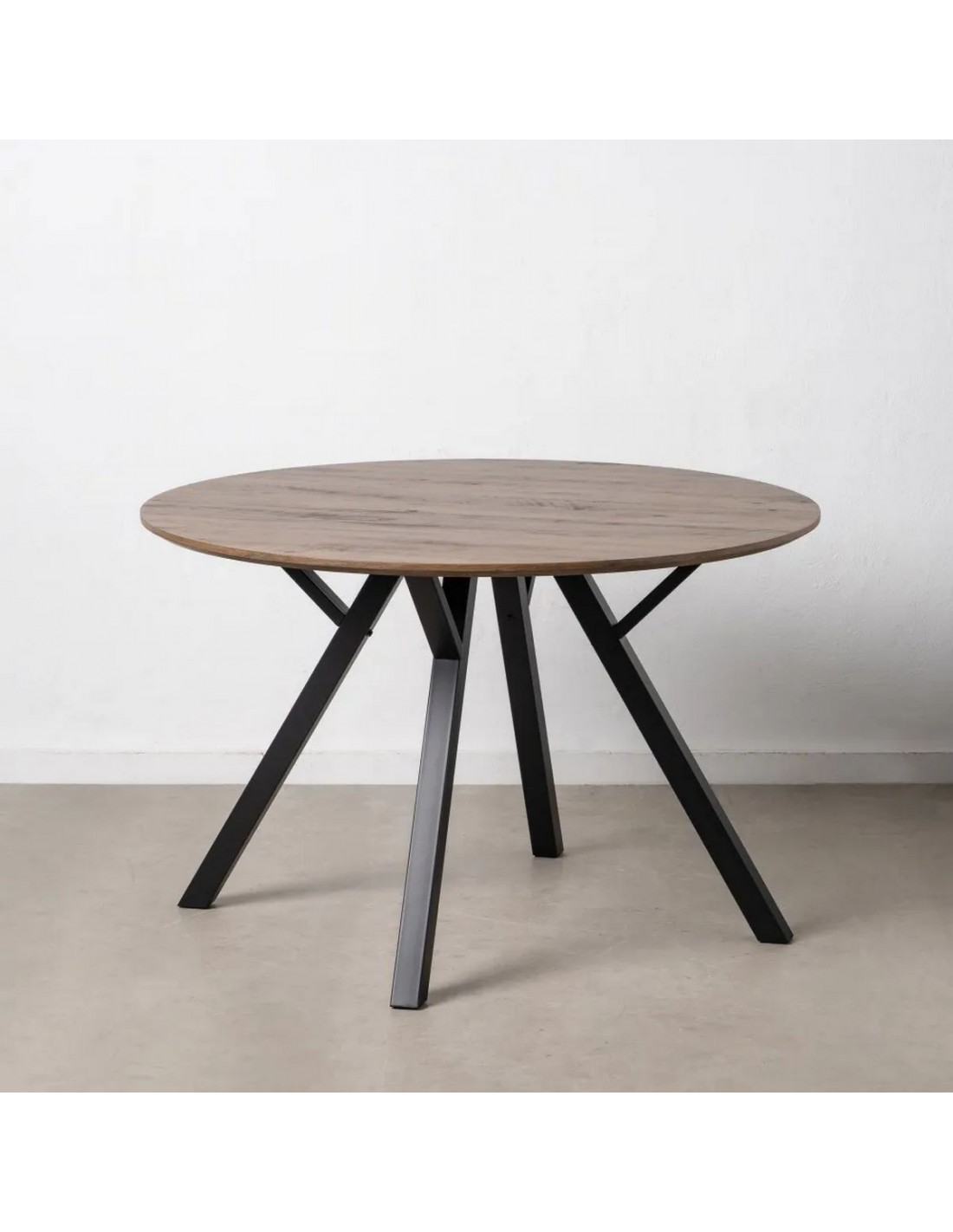 La Mesa de Comedor Redonda BERNA, marrón y negro de DM y Metal 120 cm es una opción equilibrada entre diseño, funcionalidad y precio, ideal para comedores contemporáneos que buscan calidad y estilo en cada detalle.