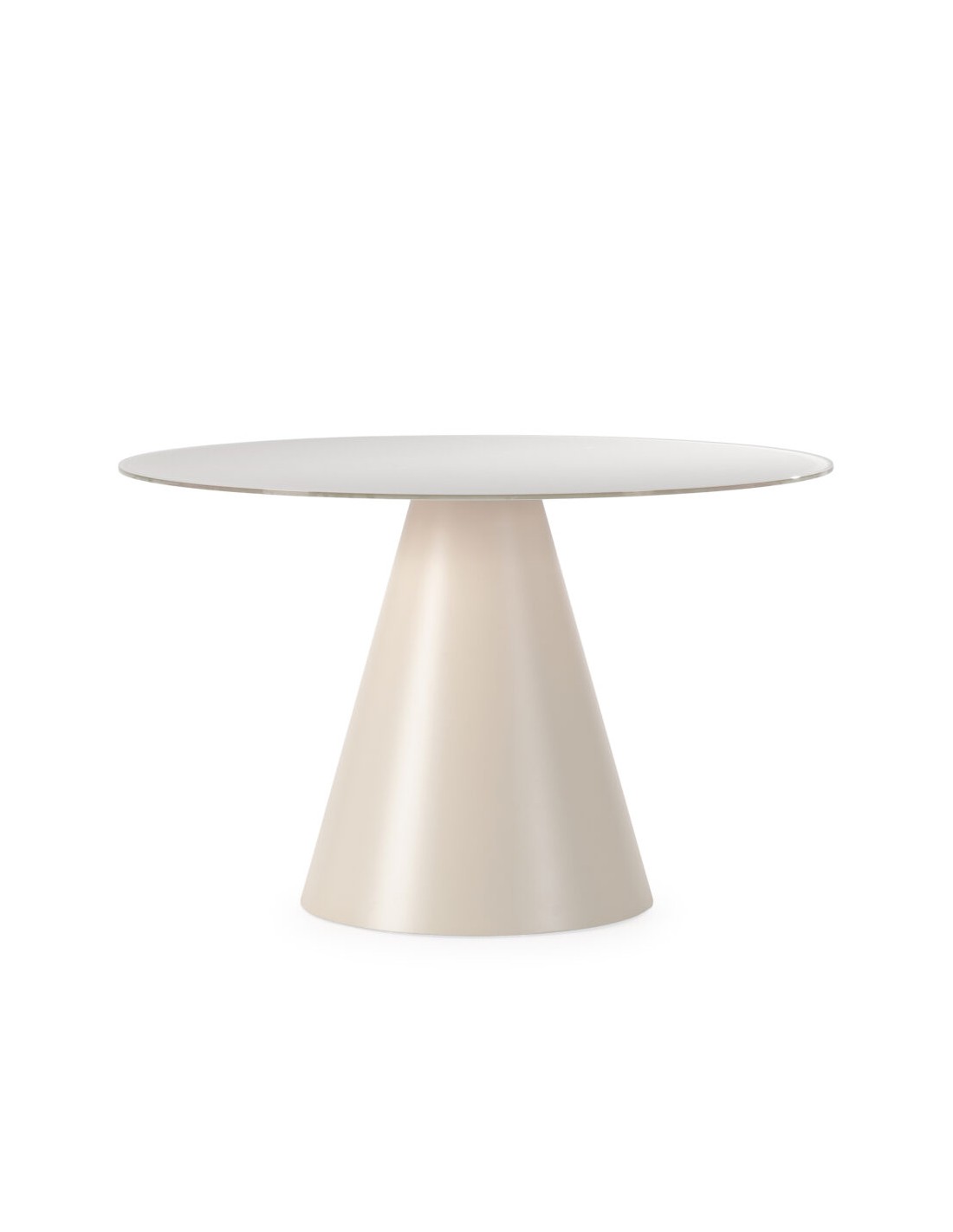La Mesa de comedor redonda VIDA 120 cm en crema con Sobre de Cristal y Base Metálica es una elección perfecta para quienes desean un comedor moderno, luminoso y funcional sin renunciar al diseño.