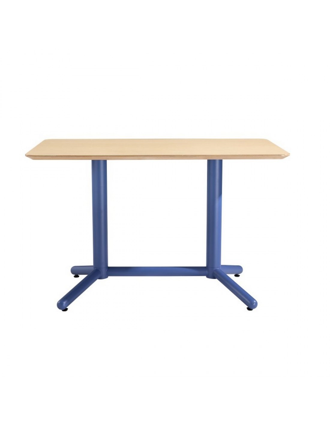 Mesa Retro Schooly – centrolandiashop | Tubo metálico azul | Contrachapado HPL natural | 120 x 70 cm | Equilibrio perfecto entre diseño retro, resistencia y envío gratuito |