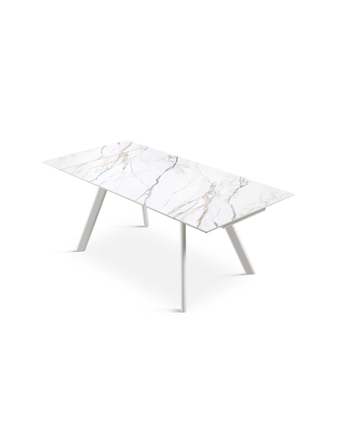 La Mesa extensible ARMINIA es perfecta para quienes buscan funcionalidad sin renunciar al estilo. Con unas medidas de 140 cm de largo, extensible hasta 200 cm, y 90 cm de ancho, esta mesa ofrece un espacio amplio y versátil para reuniones y cenas especiales. Fabricada en porcelánico de alta calidad, combina durabilidad y elegancia, mientras que sus patas de metal con acabado en blanco le aportan un toque moderno e industrial.