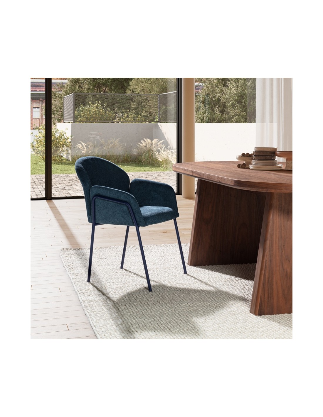 Las mesas ovaladas tienen una larga tradición en el diseño europeo por su capacidad para combinar la elegancia de las líneas curvas con la practicidad de una gran superficie. En la BLAIR, el acabado en chapa de NOGAL realza la veta de la madera y aporta luminosidad, creando un ambiente acogedor y contemporáneo.