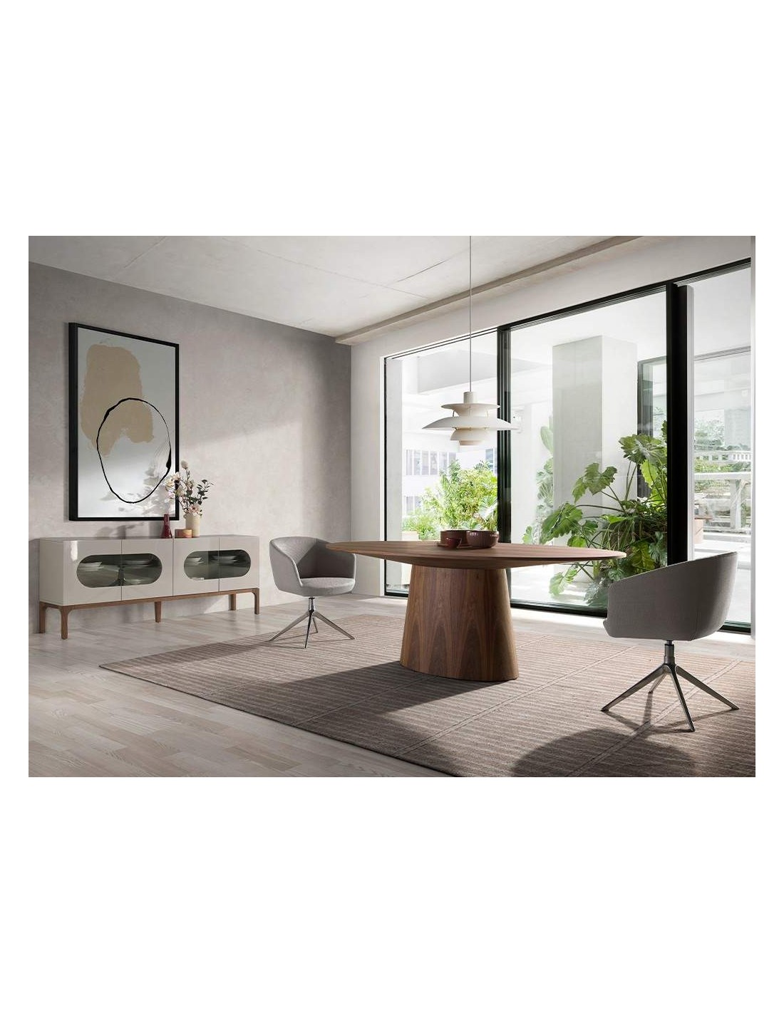 No hay más artículos en su carritoMesa de comedor fija con tapa ovalada de chapado en nogal natural 1013 de Angel Cerdá. Versátil y funcional, su diseño permite que encaje en cualquier salón o comedor, convirtiéndose en la protagonista de tu espacio. Todas nuestras mesas de comedor están fabricadas con materiales de la más alta calidad, siendo garantía de mobiliario duradero y funcional.