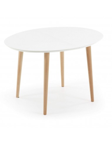 Mesa extensible ovalada con sobre de DM lacado en color blanco o marron mate. Pies en madera de haya natural barnizada. Longitud máxima 200 cm. Muy bonita y elegante, de inspiracion moderna adaptable a cualquier entorno.Muy buena calidad.