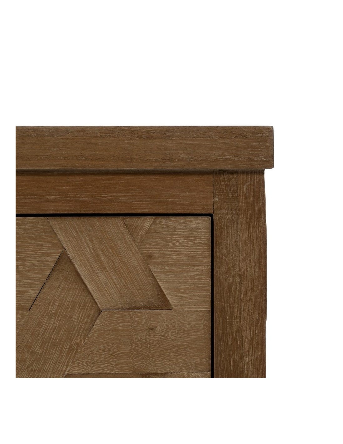 Material: estructura principal madera de paulonia - resto Dm. Altura pata: 10.5cm. Medida cajón: 40x15cm. No precisa montaje.