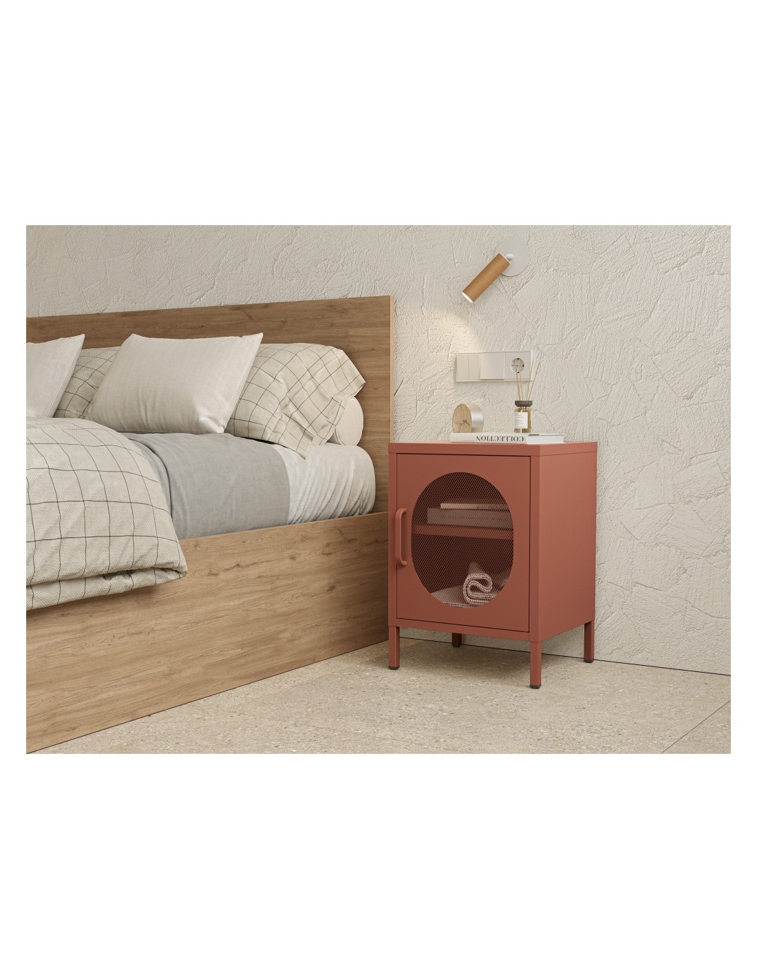 La mesita de noche minimalista DIORA metálica 40x60 cm con 1 puerta reversible está diseñada pensando en la armonía entre diseño y funcionalidad. Su estructura metálica proporciona robustez y facilidad de mantenimiento, perfecta para la rutina del día a día. La puerta reversible permite orientarla según convenga al espacio, ofreciendo máxima adaptabilidad en dormitorios, estudios o habitaciones de invitados.