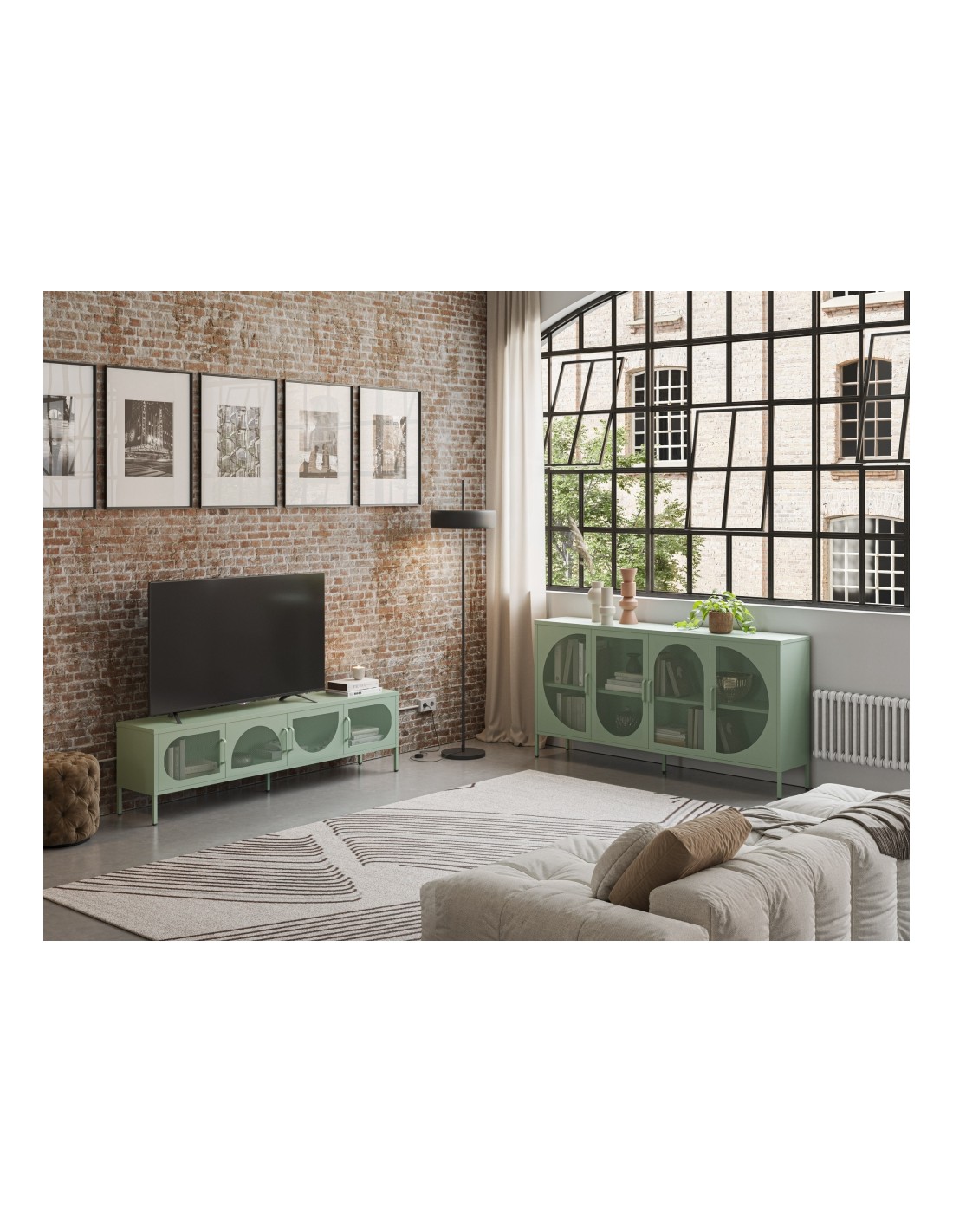 El aparador metálico minimalista TAYRA 160 cm con 4 puertas es una opción elegante y duradera disponible en crema, negro, terracota y verde, con envío gratuito peninsular y el respaldo experto de CentrolandiaShop.