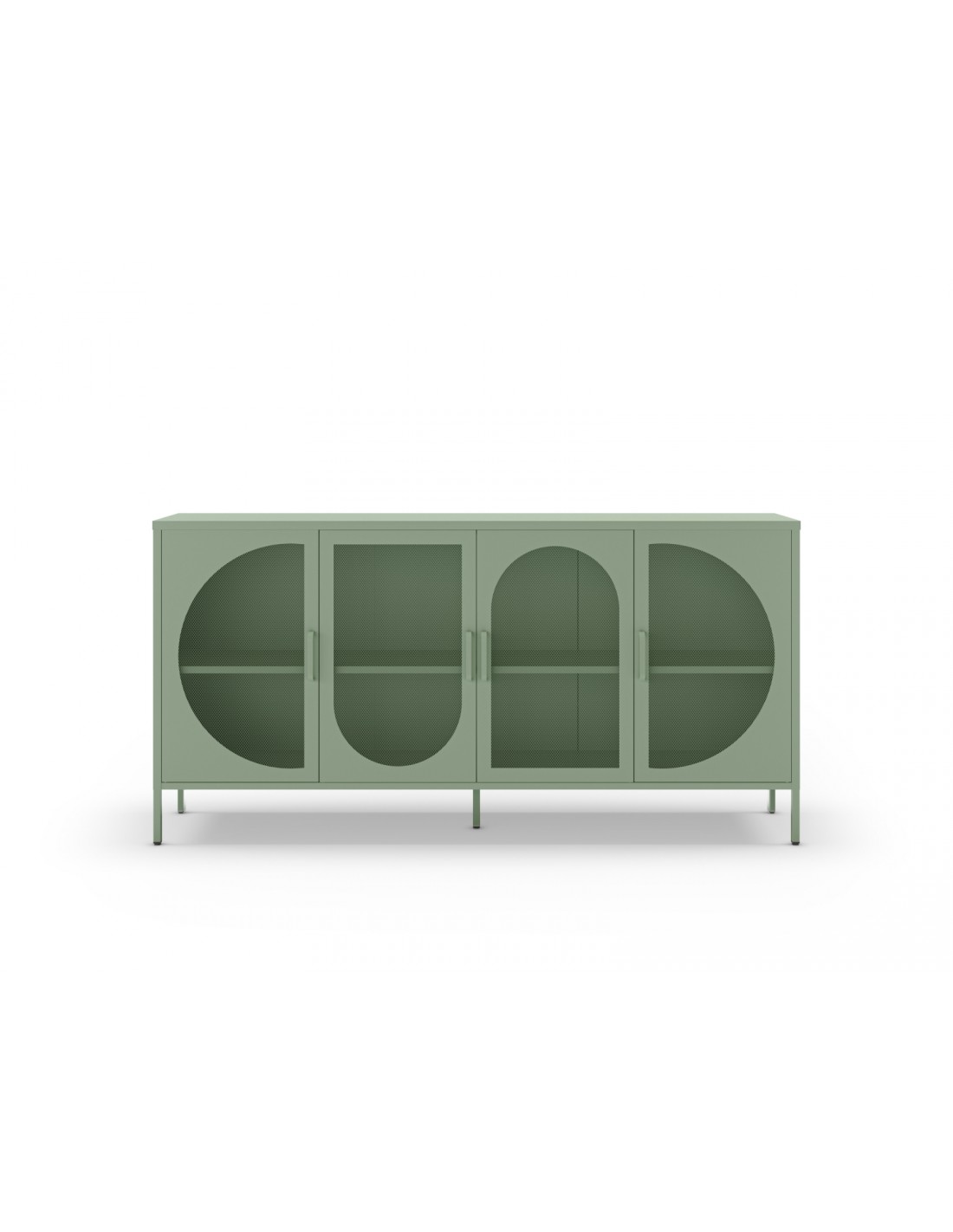 El aparador metálico minimalista TAYRA 160 cm con 4 puertas destaca por su estética depurada y su resistencia. Su disponibilidad en cuatro colores contemporáneos —crema, negro, terracota y verde— permite integrarlo fácilmente tanto en ambientes modernos como en interiores más cálidos o industriales. Sus puertas con rejilla aportan ligereza visual y personalidad, logrando un equilibrio perfecto entre funcionalidad y estilo.