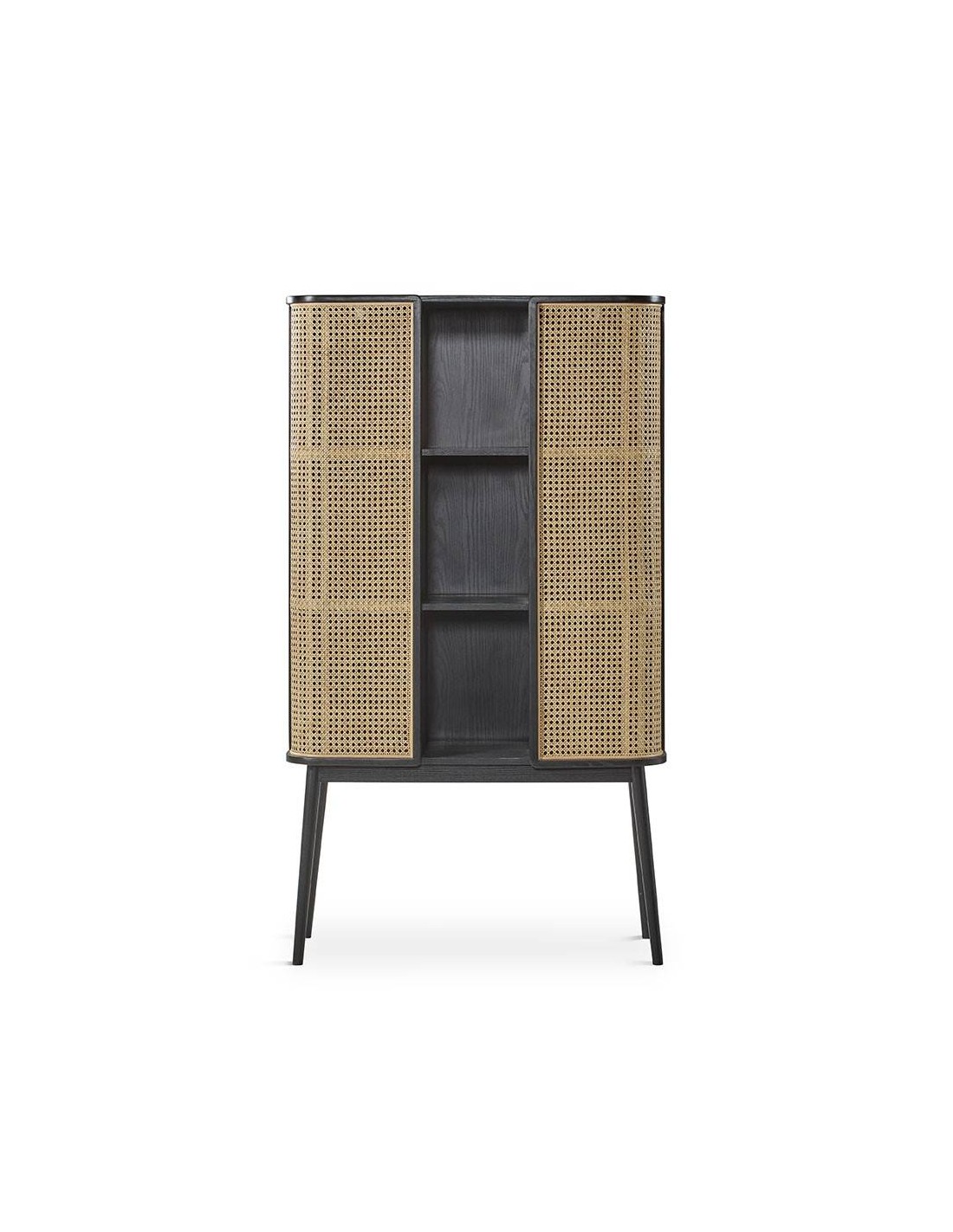 Su amplio espacio de almacenamiento lo convierte en una elección ideal para la sala de estar, el comedor o incluso el dormitorio. Las puertas de ratán, con su textura y apariencia distintivas, le confieren un toque de elegancia y exotismo.La combinación de puertas en ratán y patas de madera en negro crea una mezcla intrigante entre lo natural y lo contemporáneo, lo que hace que este aparador cubo se destaque como una pieza única y llamativa en cualquier espacio. Su diseño distintivo y su calidad de construcción garantizan que sea tanto una declaración de estilo como una solución de almacenamiento práctica.El aparador cubo LEXUS es la elección perfecta para aquellos que buscan un mueble que no solo sea visualmente atractivo, sino también funcional y resistente. Ya sea que lo utilices para guardar tus pertenencias o como un punto focal decorativo, este aparador añadirá un toque de sofisticación y exotismo a tu hogar.