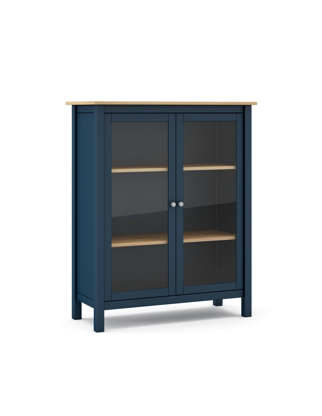 Vitrina mediterráneo MISTI 90 x 110, madera pino encerada y azul