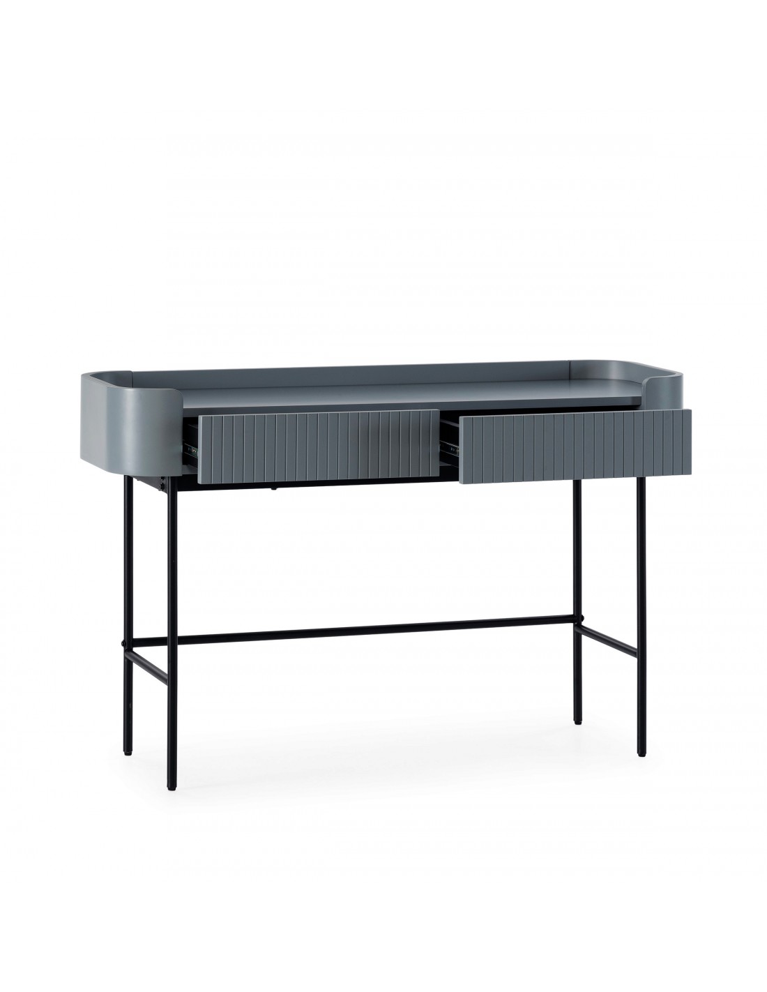 Inspirada en el interiorismo nórdico contemporáneo, la consola WILLA combina el azul profundo con patas metálicas negras, creando un contraste equilibrado y elegante. Su diseño ligero visualmente amplía el espacio y aporta un aire moderno sin sobrecargar el ambiente.
