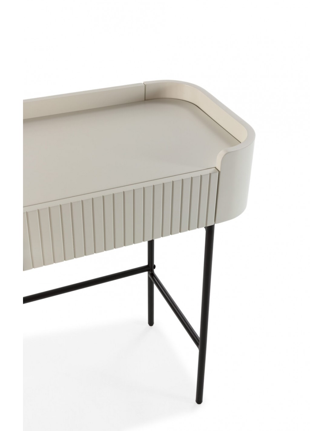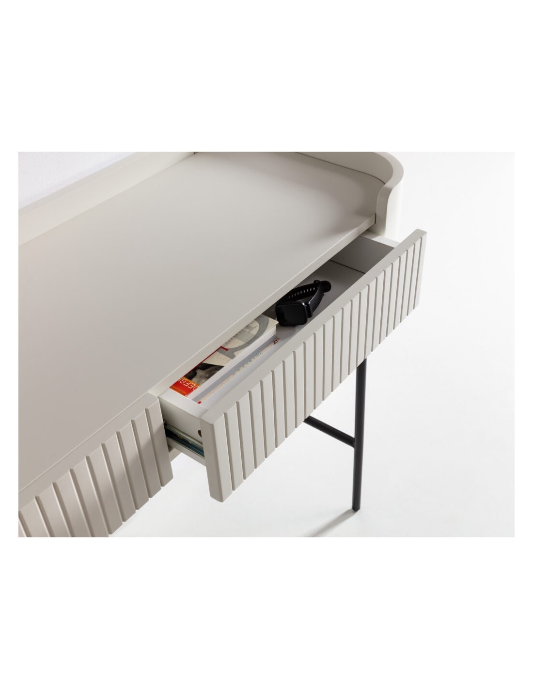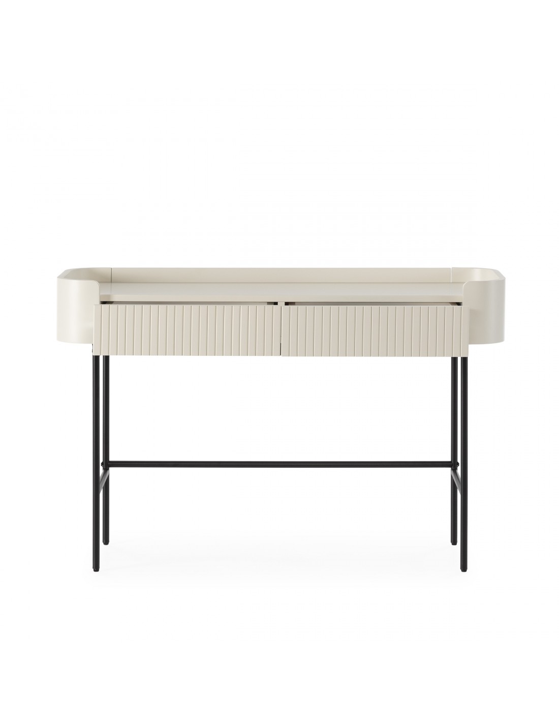 Inspirada en el interiorismo nórdico contemporáneo, la consola WILLA combina el crema profundo con patas metálicas negras, creando un contraste equilibrado y elegante. Su diseño ligero visualmente amplía el espacio y aporta un aire moderno sin sobrecargar el ambiente.