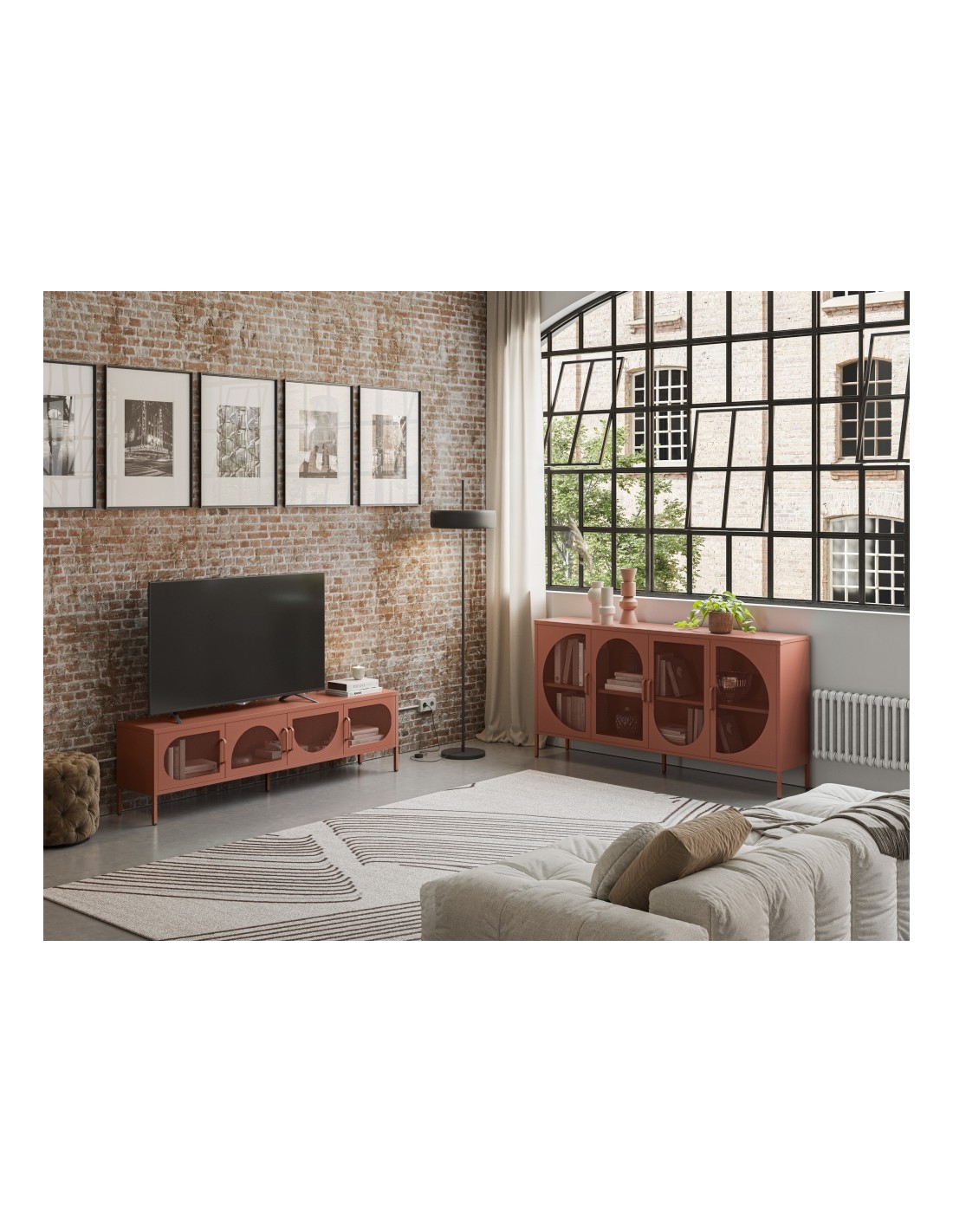Mueble de TV metálico minimalista TAYRA terracota 180 cm con 4 puertas
