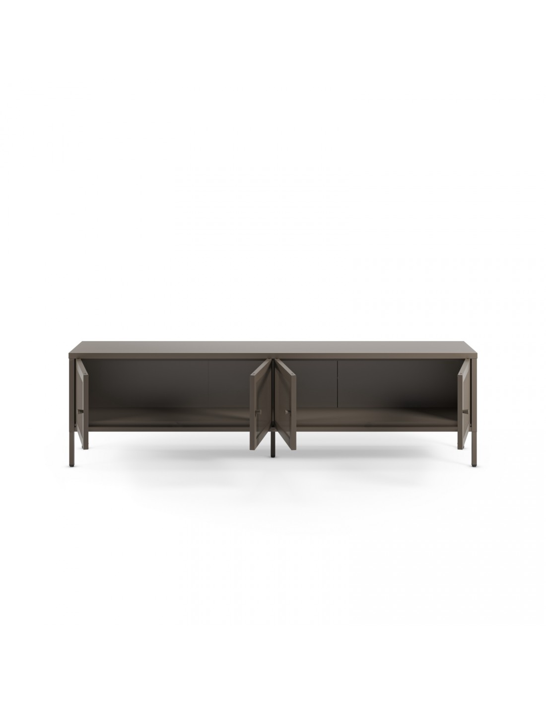 El Mueble de TV metálico minimalista FAYNA 160 cm con 4 puertas está diseñado para ofrecer la combinación perfecta entre estética contemporánea y funcionalidad real. Su estructura completamente metálica proporciona una durabilidad excepcional, mientras que las puertas con rejilla mantienen la ventilación interna, evitando el sobrecalentamiento de consolas, decodificadores y otros dispositivos electrónicos.