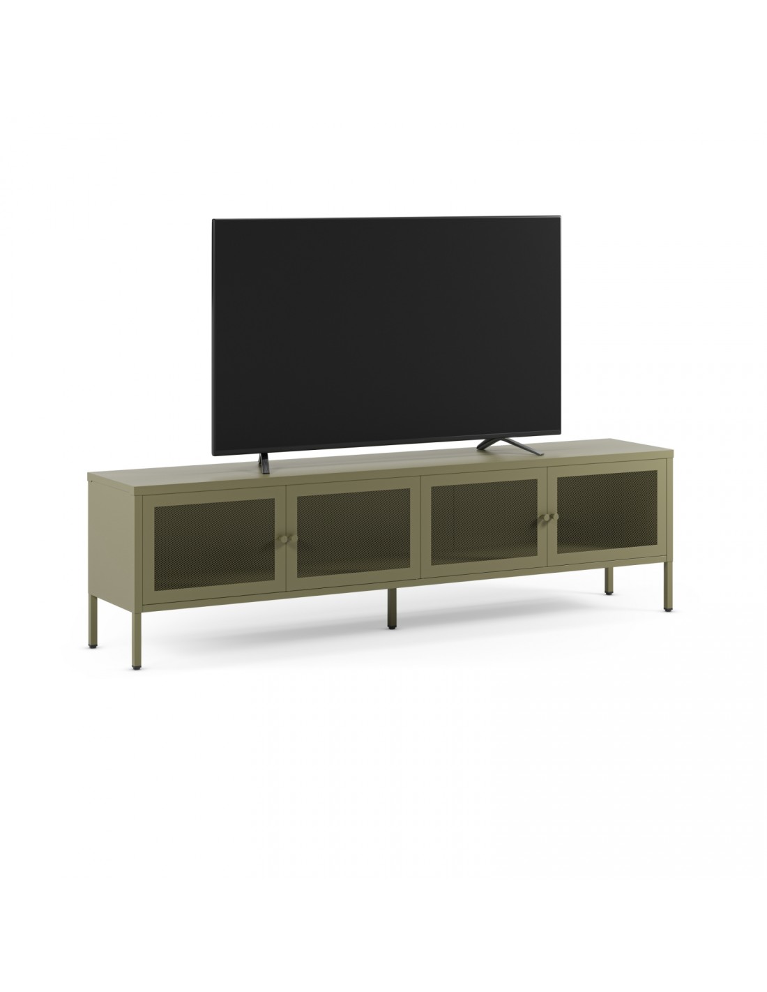 Mueble de TV metálico minimalista FAYNA en verde, 160 cm con 4 puertas