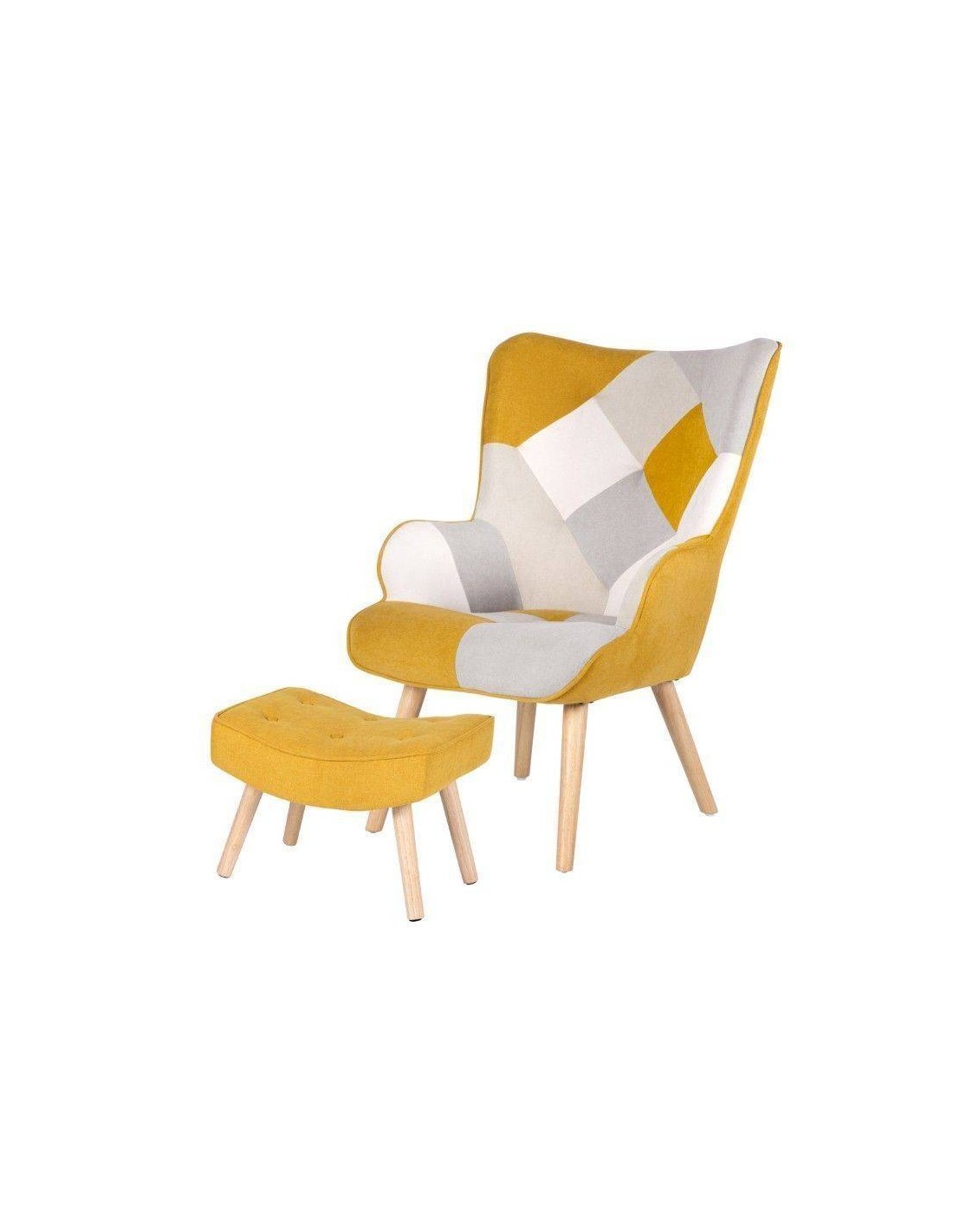 Reposapies DUBLIN tapizado en mostaza con patas de madera
