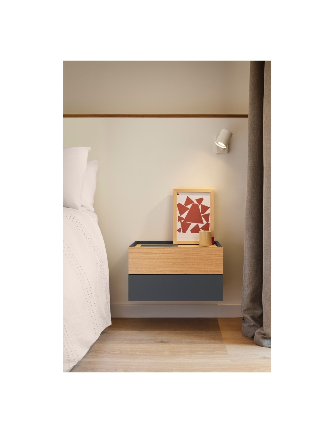 Otto se distingue por un estilo moderno de líneas limpias, en el cual el color se combina con acentos en chapa natural, permitiéndole adaptarse a una amplia variedad de espacios. Su diseño incorpora diversas configuraciones de almacenaje, otorgándole una mayor versatilidad y aportando ritmo y dinamismo a su estructura. Esta mesita a pared está diseñada para brindar espacio de almacenamiento conveniente con sus dos cajones.