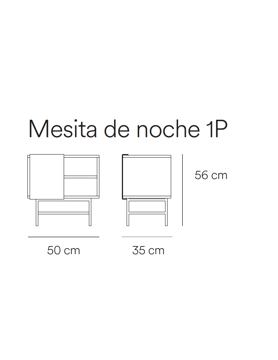 La mesita de noche Nube es una pieza moderna y funcional que añade estilo a cualquier dormitorio. Cuenta con una puerta corredera en un tono gris antracita que le da un toque cálido y original. La estructura en color negro y líneas rectas ofrece un contraste perfecto con la puerta, mientras que sus patas elevadas de metal brindan estabilidad y un aire ligero. En el interior, tiene dos niveles de almacenamiento, ideales para guardar tus cosas de manera ordenada y discreta.