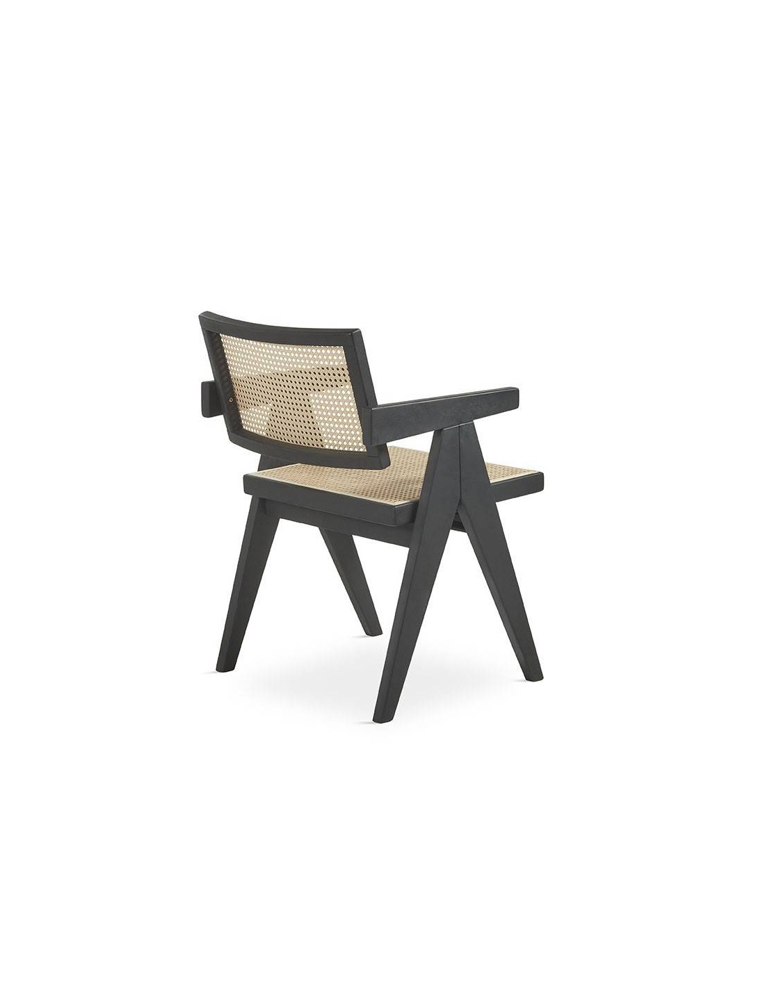 Silla de diseño con brazos KILME, madera en negro y ratan.