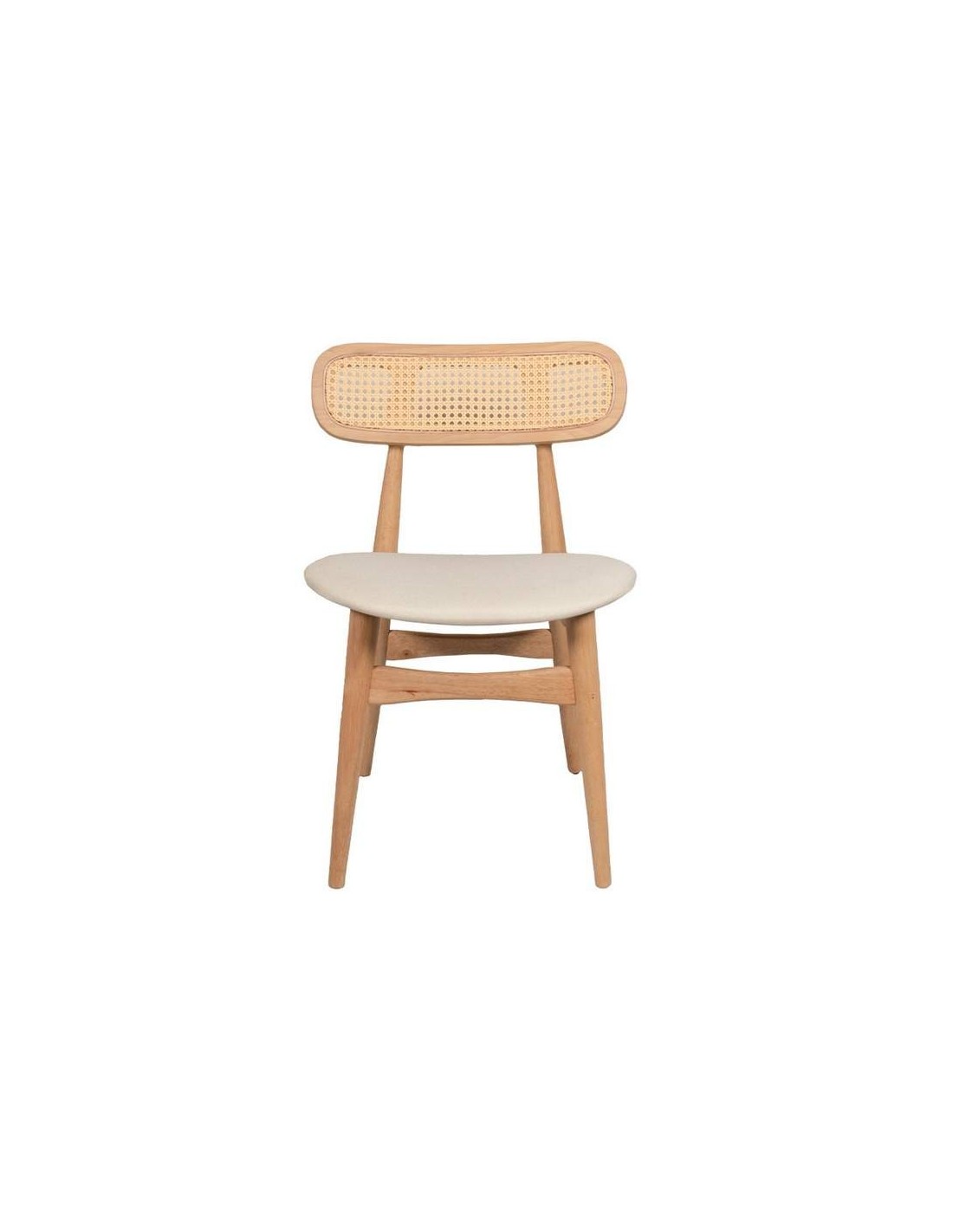 Silla colonial Dorian, madera natural y ratán, asiento en tela.