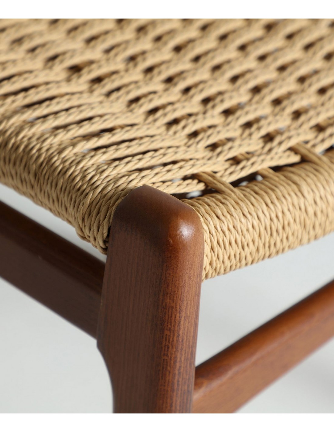 - Material: Madera de haya maciza (color marrón) y cuerda beige tejida a mano