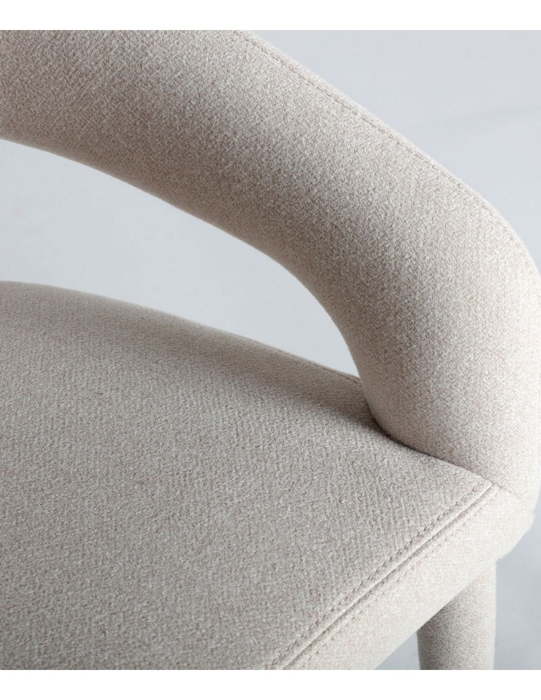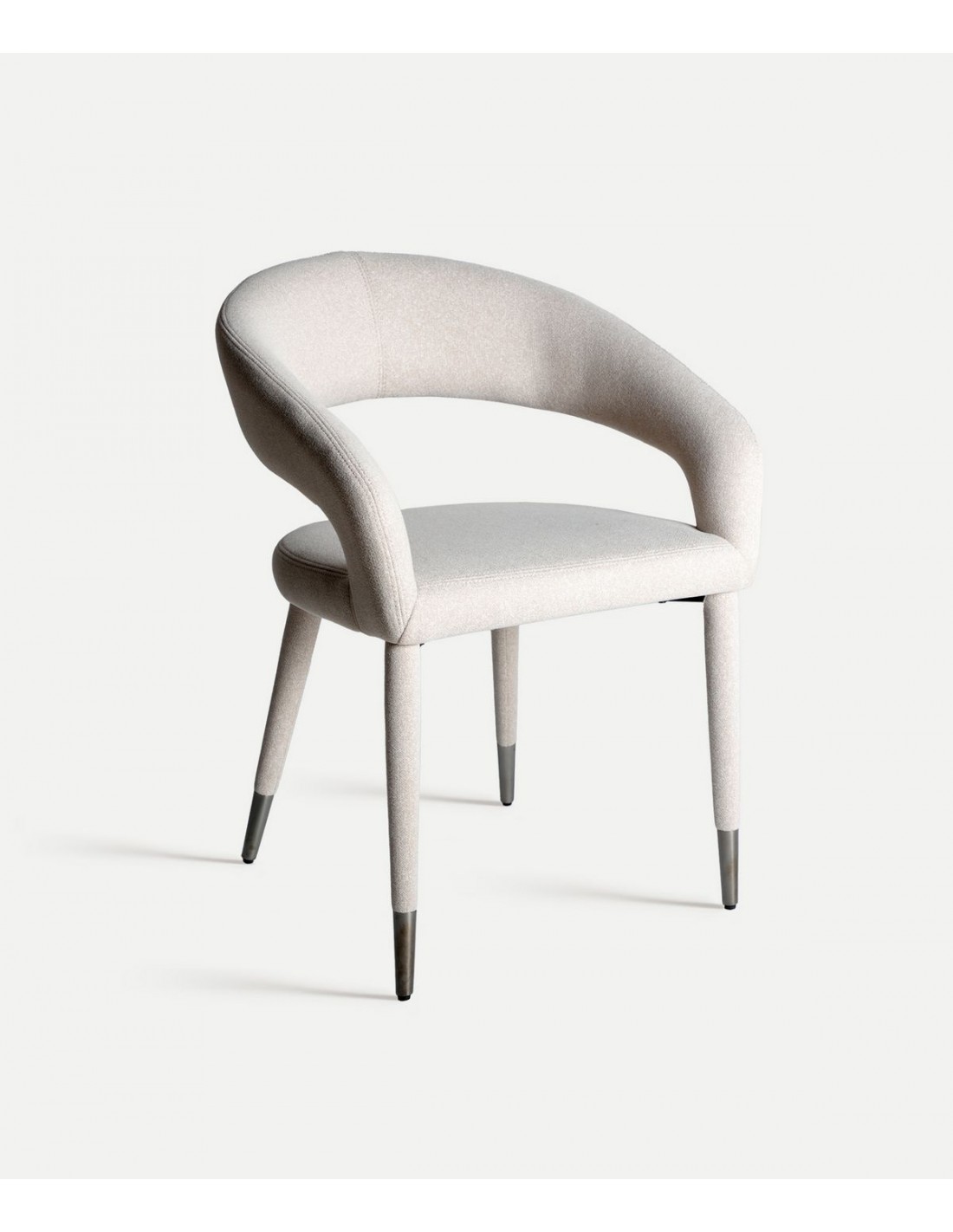 La Silla CASSEL de acero inoxidable y tejido blanco roto, diseño art déco elegante y curvo es una pieza para quienes no se conforman con lo ordinario. Con su presencia envolvente, patas cónicas y tapizado suave, convierte cualquier estancia en un espacio con alma. Aporta ese toque de hotel boutique que todos desearíamos tener en casa.