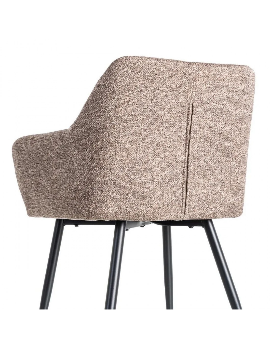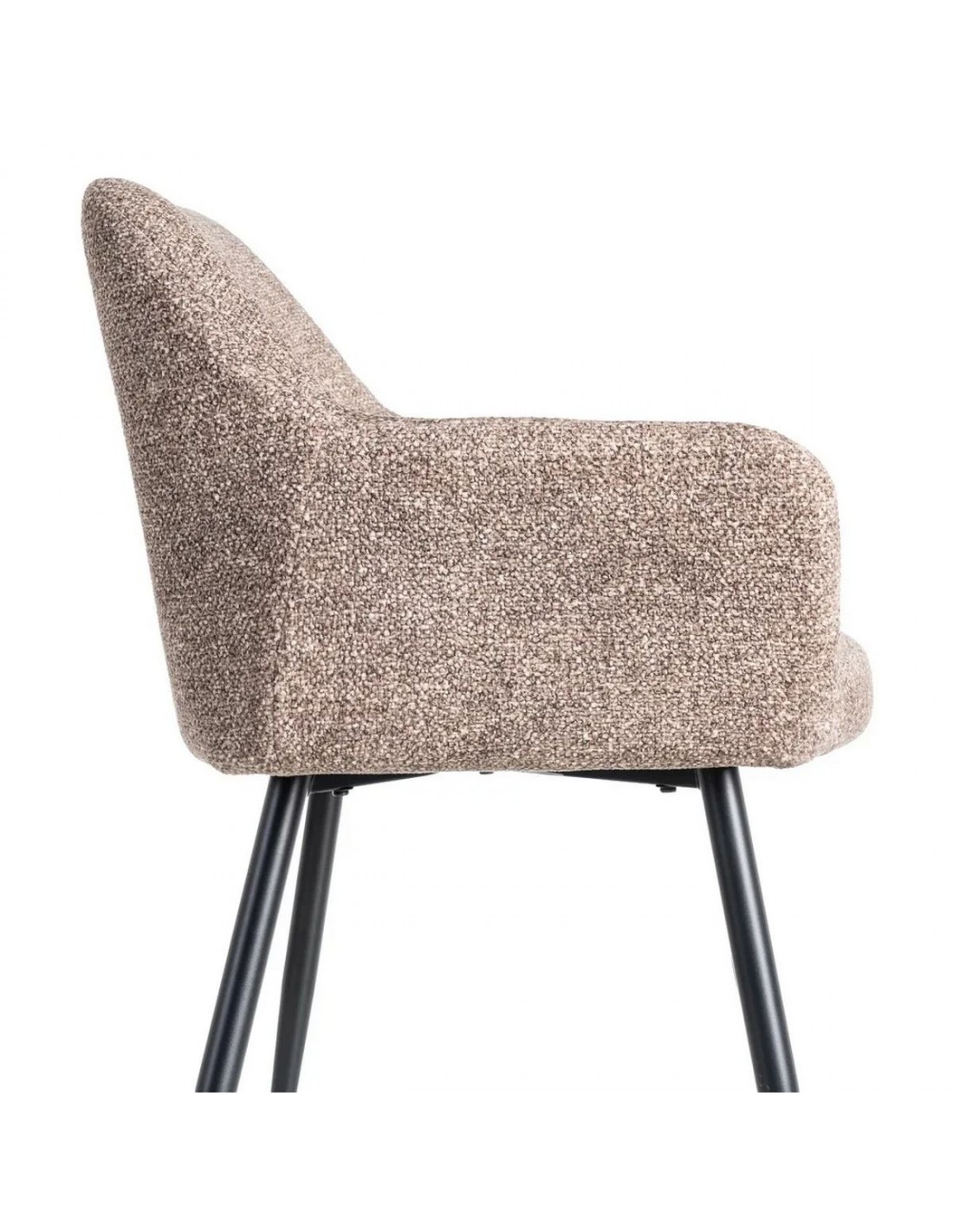 La Silla ARDEN con brazos de estilo nórdico es perfecta para quienes buscan estilo y funcionalidad. El tejido jaspeado ofrece una textura cálida y acogedora, mientras que las patas negras de hierro añaden un toque contemporáneo. Su respaldo medio y brazos acolchados convierten esta silla en un asiento cómodo y estable para el uso diario.