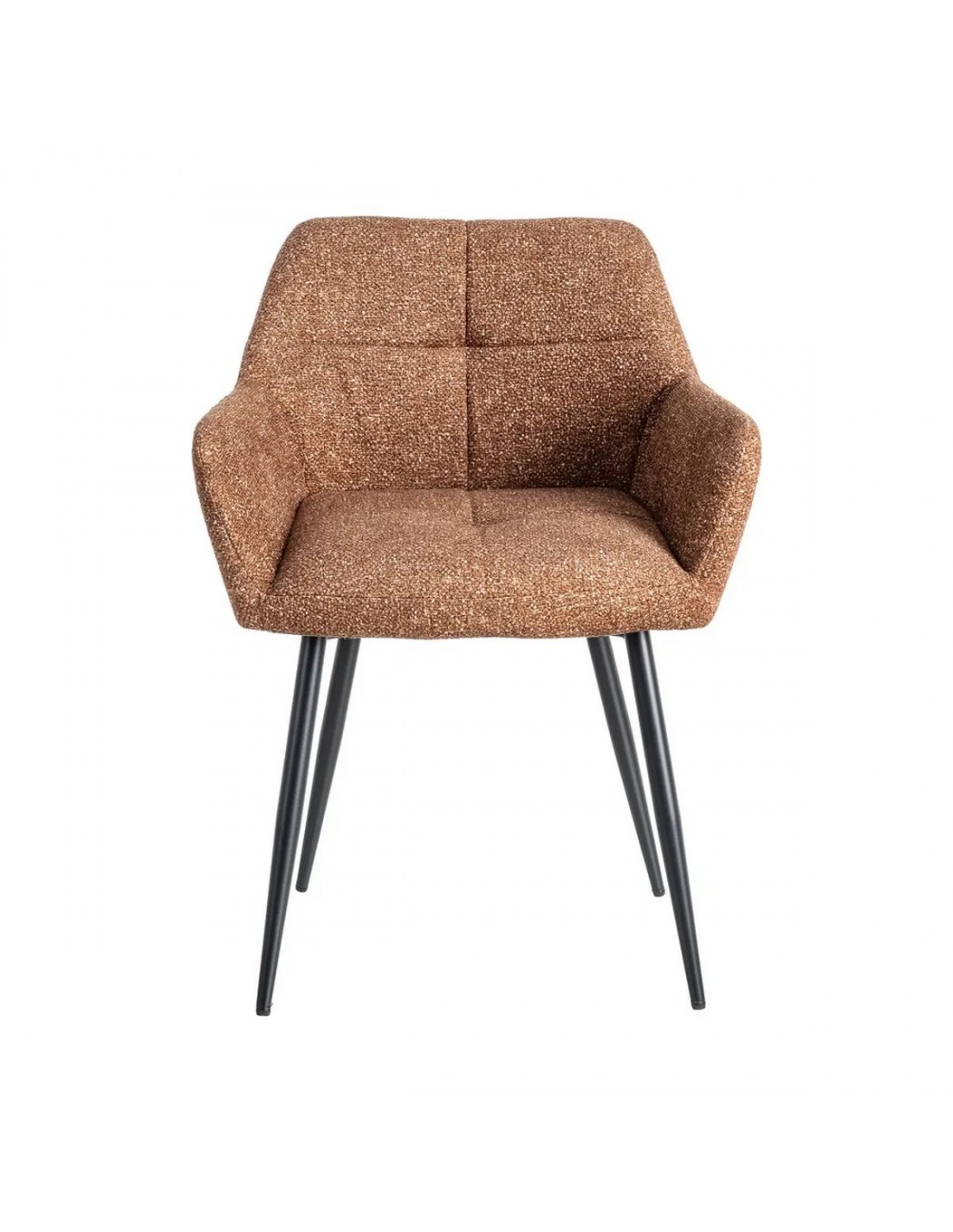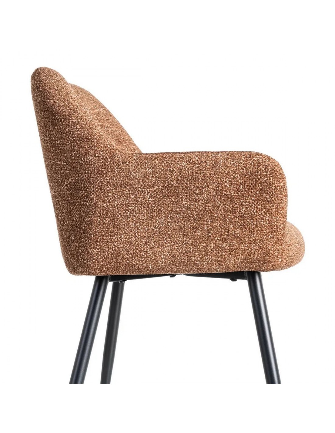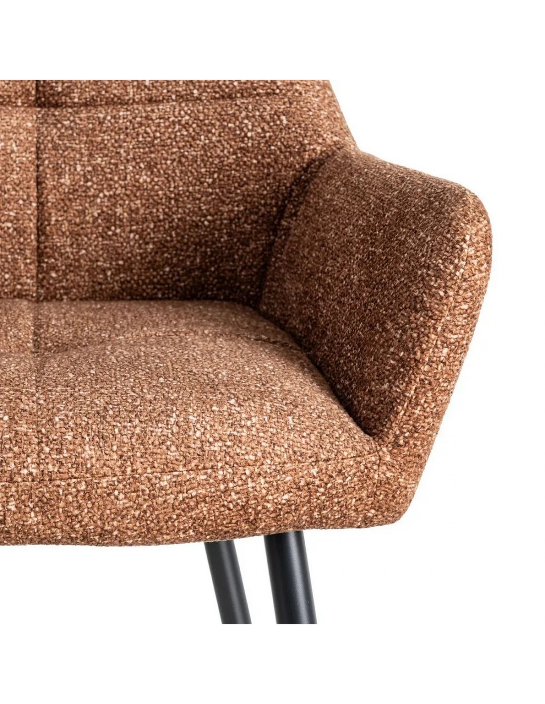 La Silla ARDEN con brazos de estilo nórdico es perfecta para quienes buscan estilo y funcionalidad. El tejido jaspeado ofrece una textura cálida y acogedora, mientras que las patas negras de hierro añaden un toque contemporáneo. Su respaldo medio y brazos acolchados convierten esta silla en un asiento cómodo y estable para el uso diario.