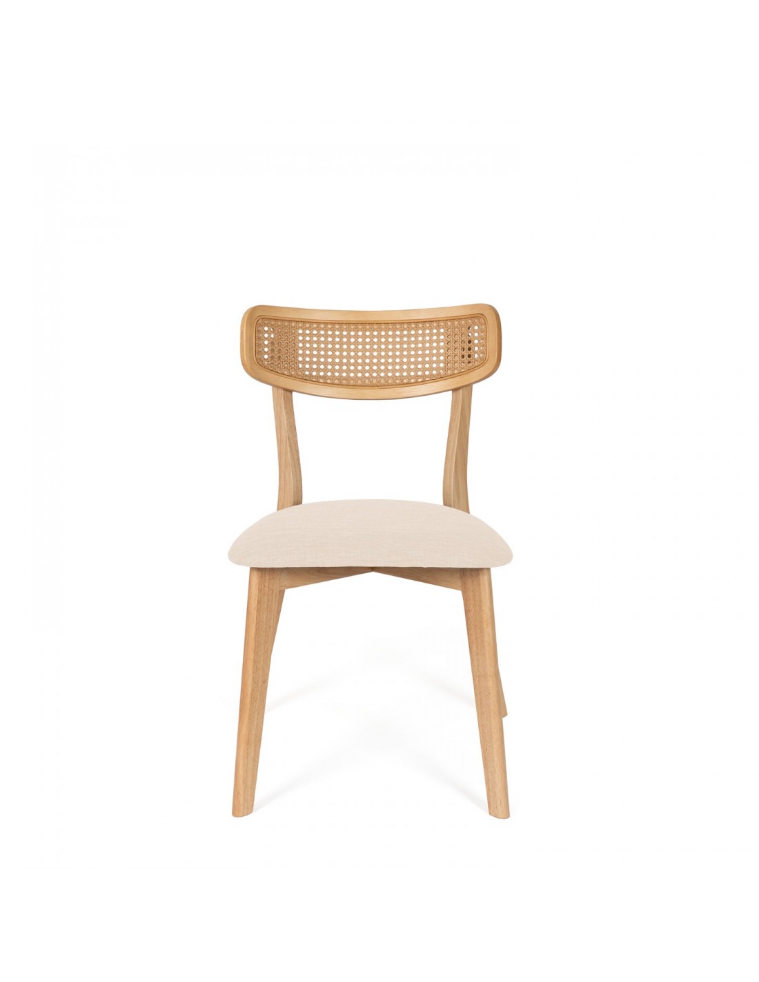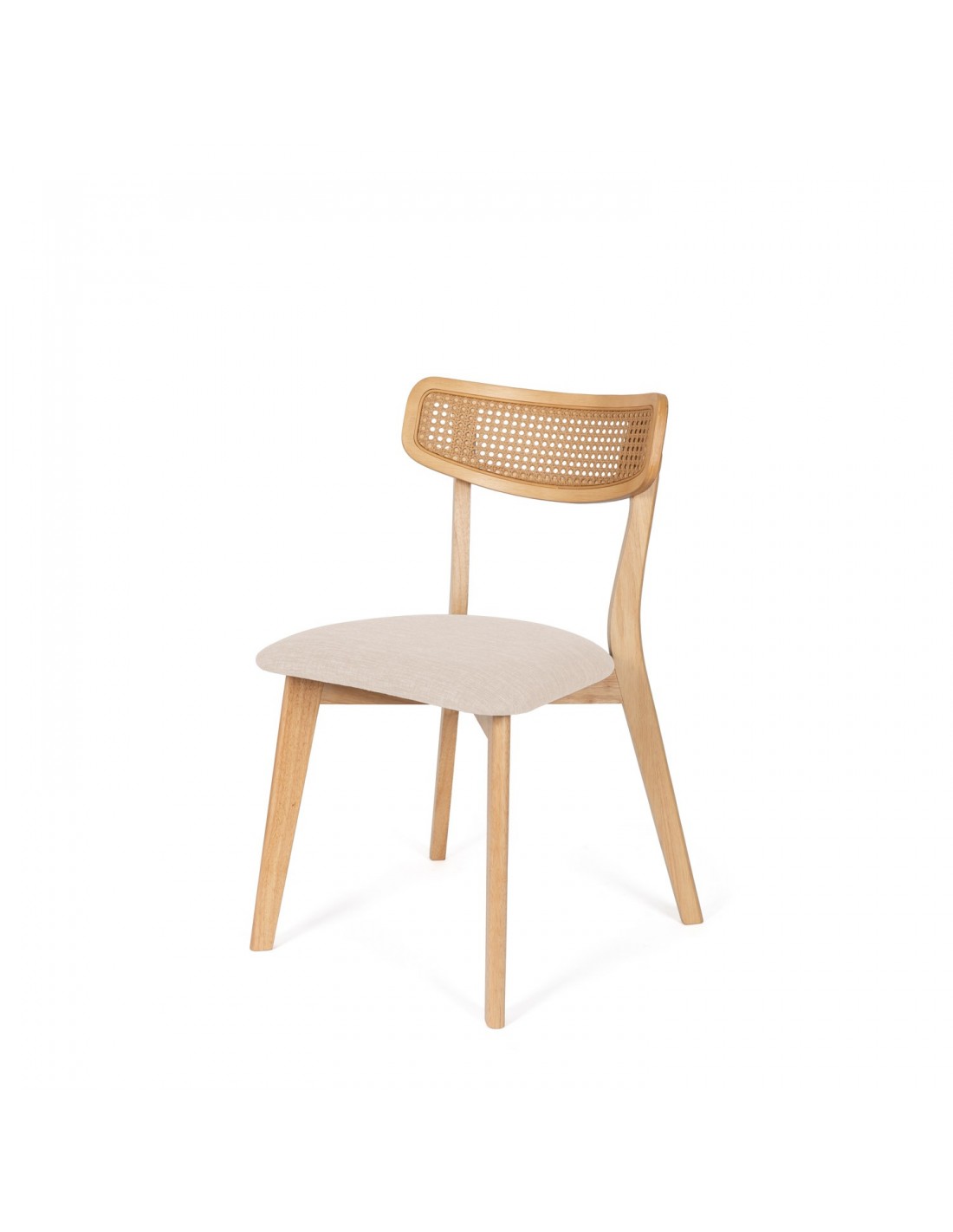 Inspirada en la estética nórdica y mid-century, la silla SHIRLEY es mucho más que un asiento: es una pieza decorativa con carácter. Su respaldo en cannage sintético JAVA beige no solo aporta un toque artesanal, sino que mejora la ventilación y la ligereza visual del espacio.