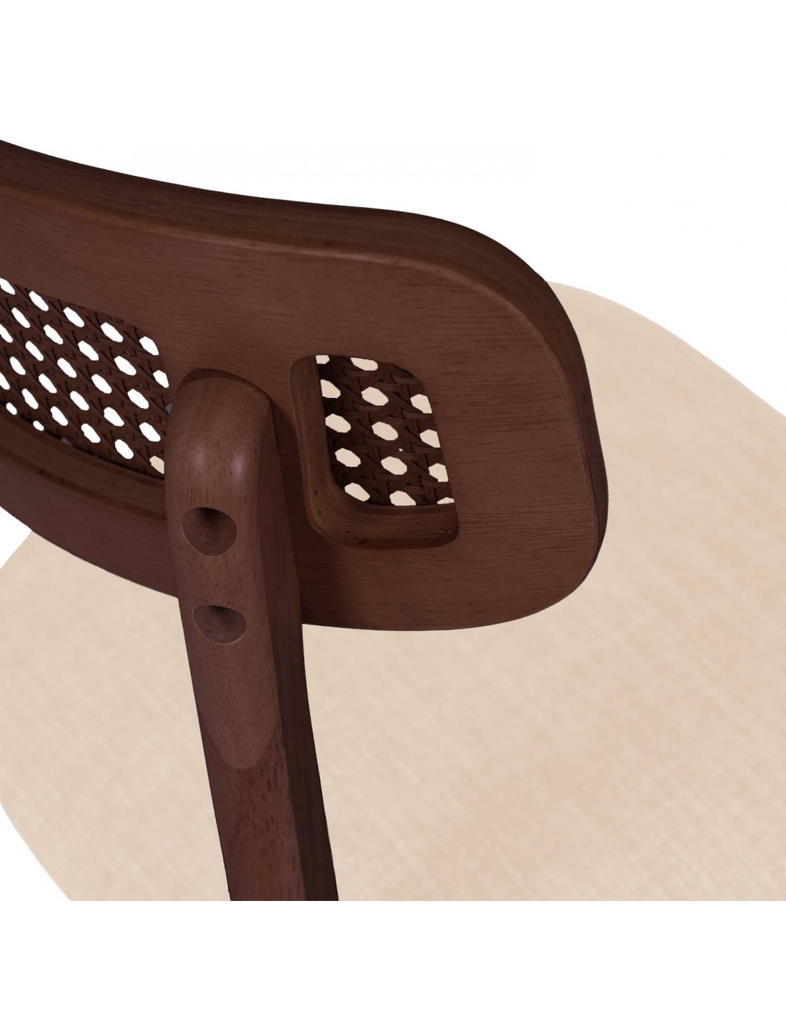 Inspirada en la estética nórdica y mid-century, la silla SHIRLEY es mucho más que un asiento: es una pieza decorativa con carácter. Su respaldo en cannage sintético JAVA beige no solo aporta un toque artesanal, sino que mejora la ventilación y la ligereza visual del espacio.