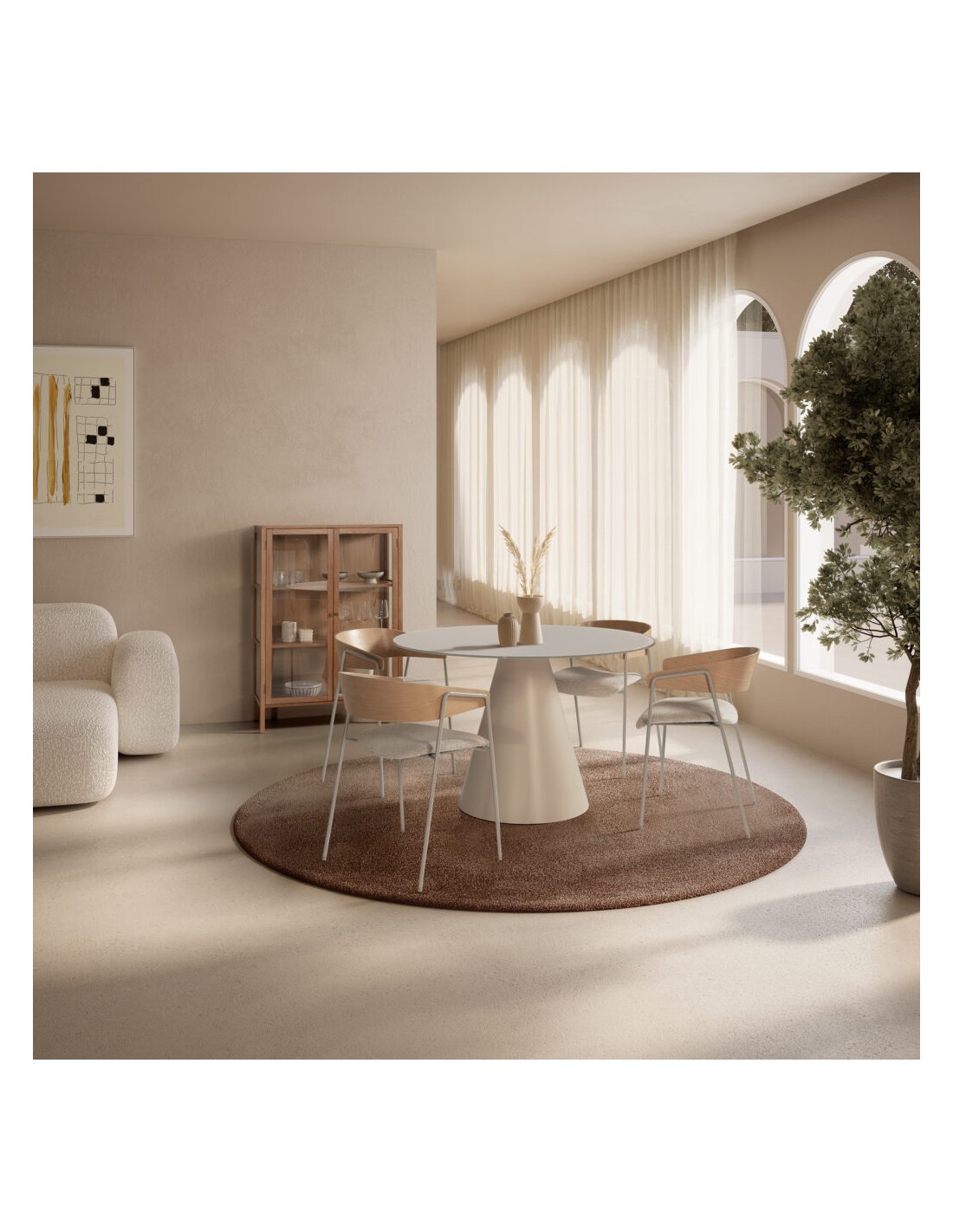 Combinada con una mesa de roble natural o porcelánico claro, crea un conjunto elegante y equilibrado.