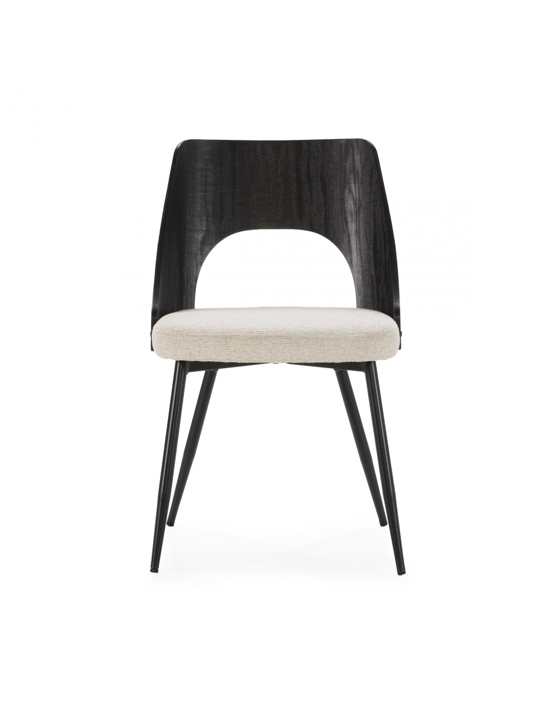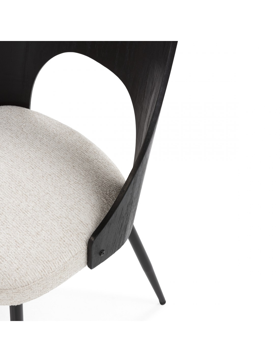 Las patas de metal estilizadas refuerzan el carácter moderno de la silla y garantizan estabilidad y resistencia.