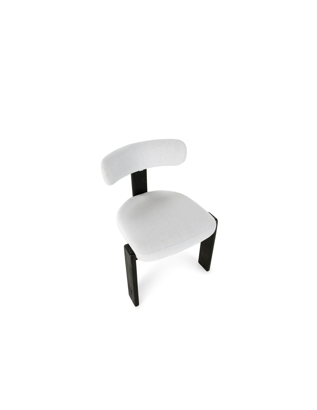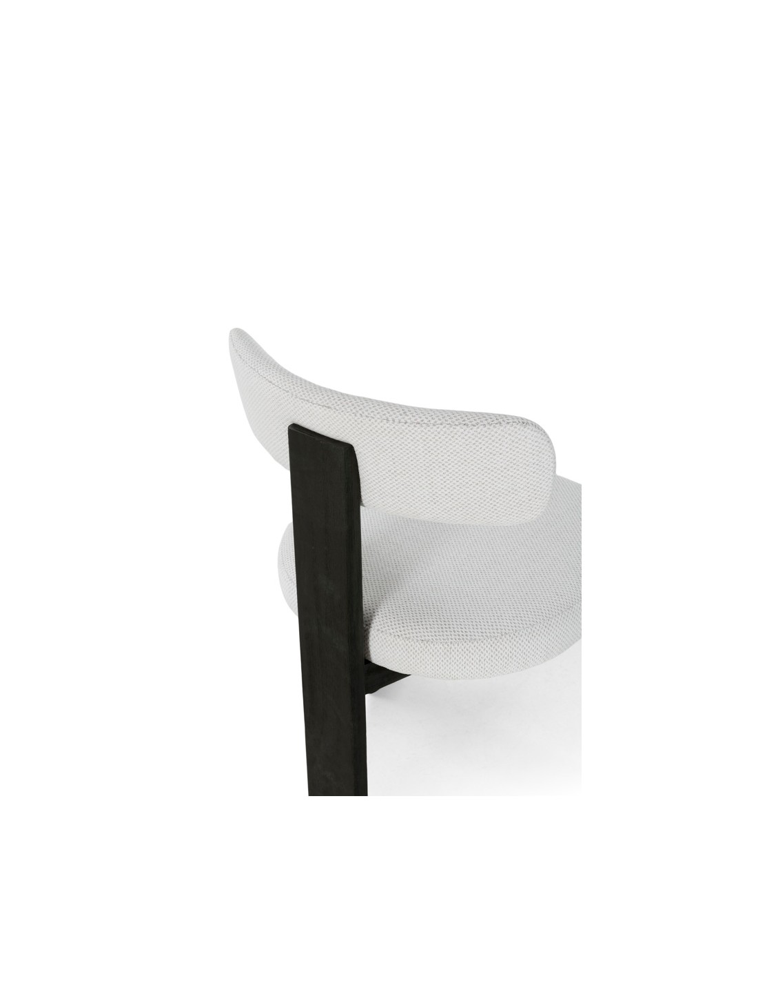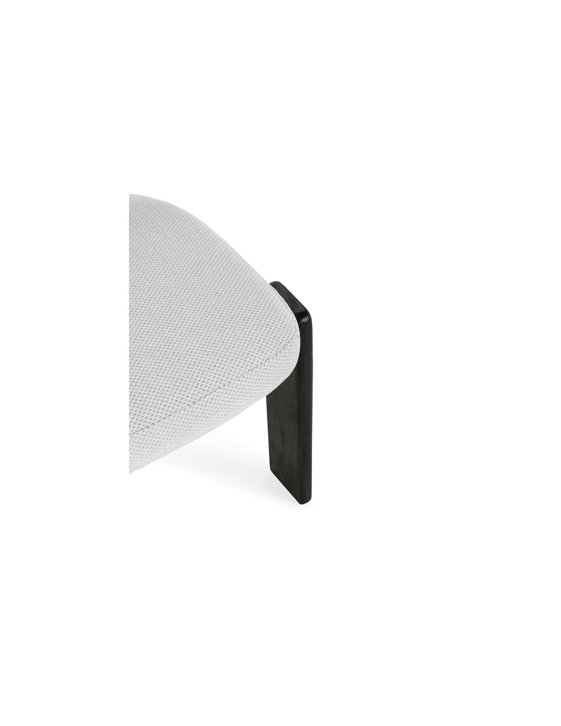 El tejido gris hielo aporta luminosidad, sensación de amplitud y un carácter moderno, mientras que la estructura en color negro introduce un contraste elegante y actual. Esta combinación, muy utilizada en el diseño europeo contemporáneo, permite integrar la silla en ambientes modernos, industriales suaves o minimalistas.