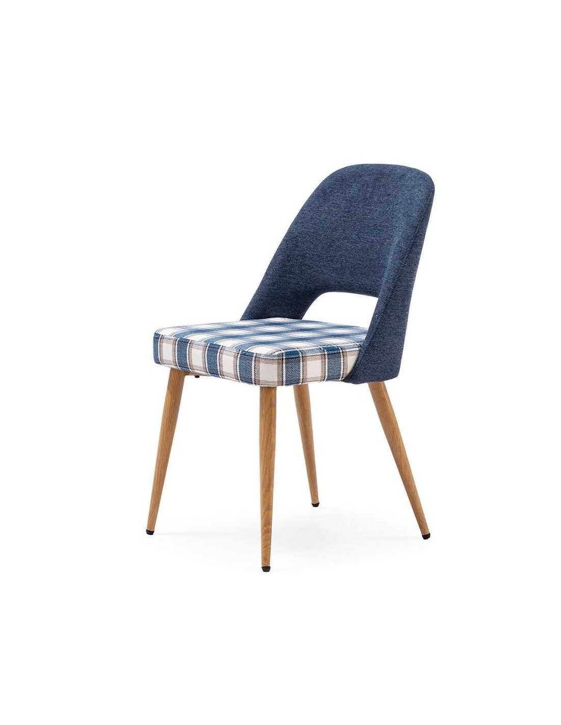 Silla de comedor en tejido de cuadros combinado MOCCIA, patas metálicas simil madera