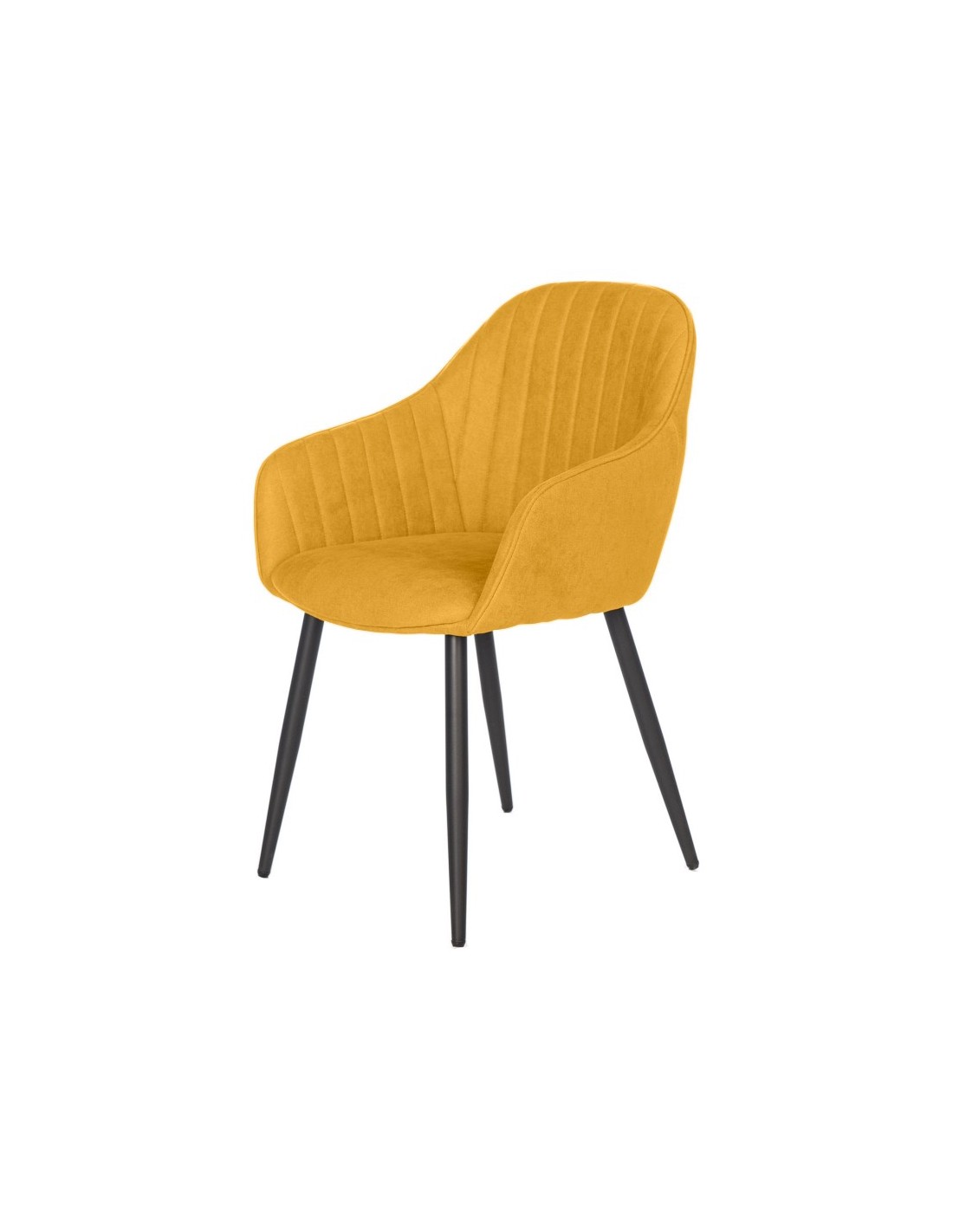 Silla comedor NATALIA, tejido mostaza y patas de metal negro.