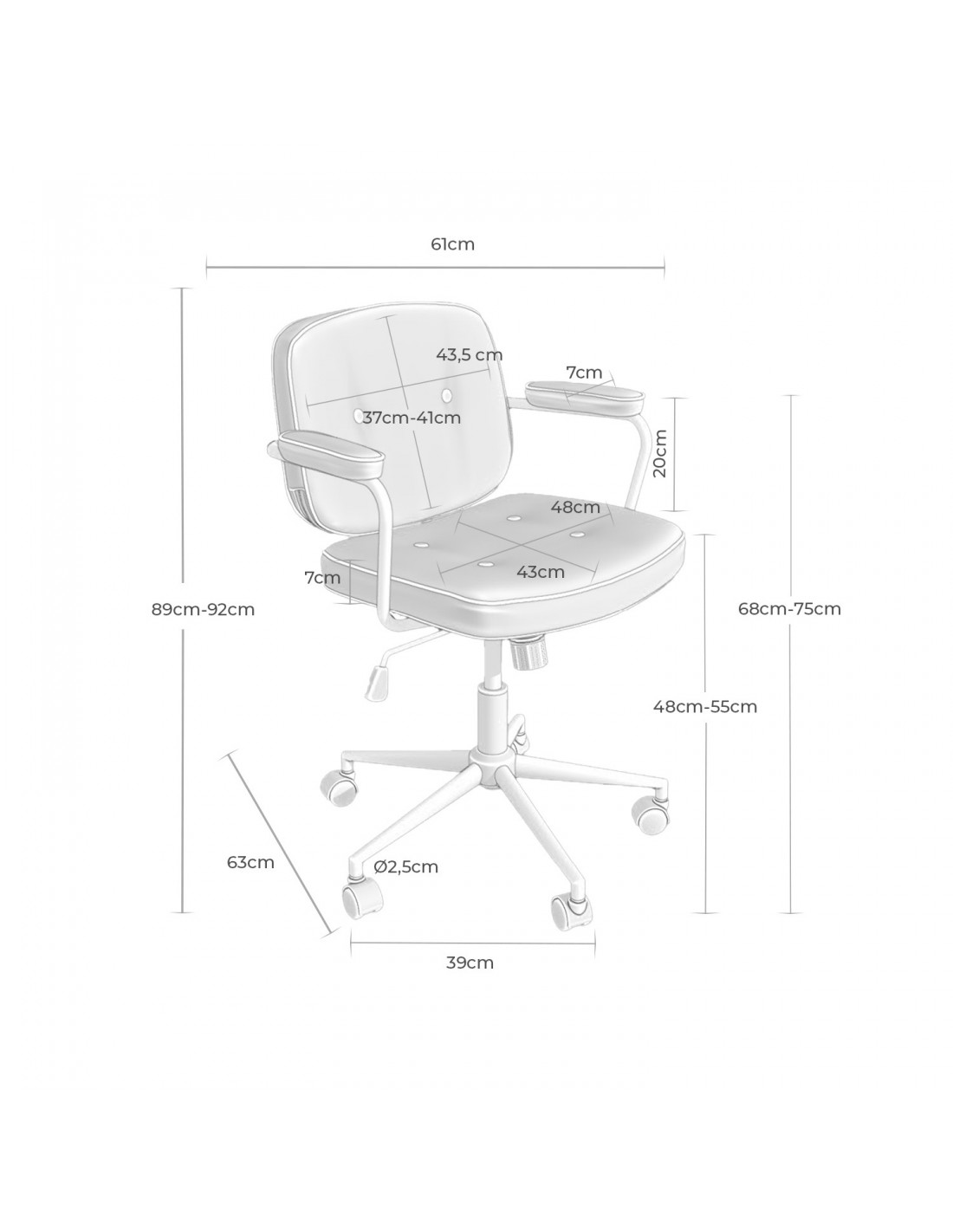 La silla de oficina estilo retro COLUMBIA fusiona un diseño vintage con características modernas, convirtiéndose en una opción ideal para quienes buscan añadir personalidad y funcionalidad a su espacio de trabajo. Su diseño ergonómico está cuidadosamente diseñado para ajustarse a la forma natural del cuerpo, garantizando un soporte óptimo durante largas horas de trabajo. La estructura metálica en color negro no solo resalta por su elegancia, sino que también asegura una gran robustez y durabilidad.