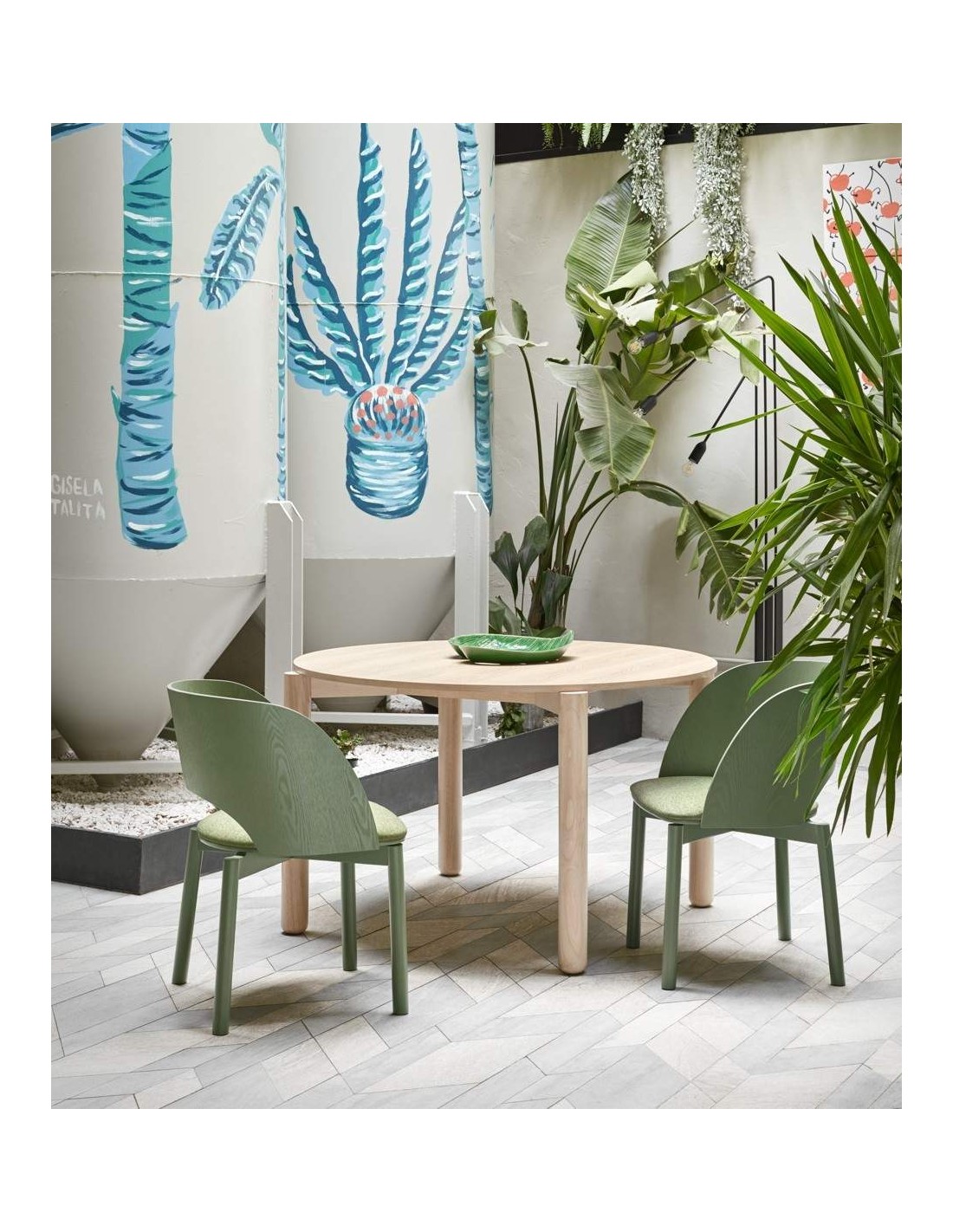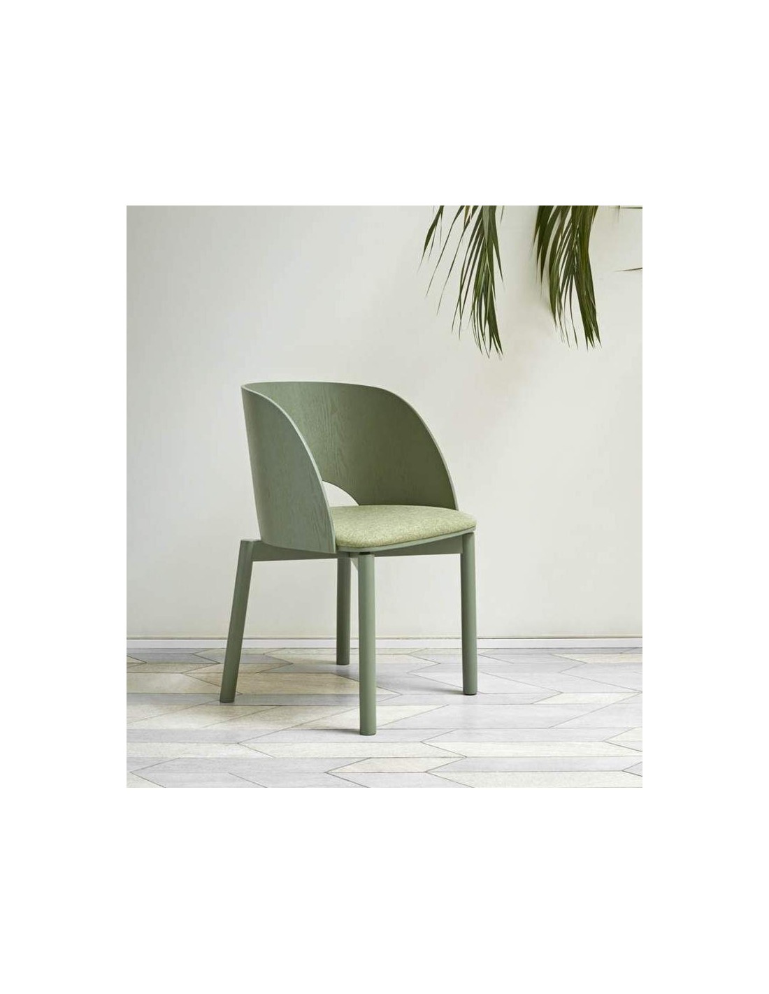 Silla del diseñador STEFAN SCHÖNING. Realizada totalmente en madera tintada en verde oliva recuperando técnicas de ebanistería tradicional. Cojín tapizado en tela verde. La silla juega con unas proporciones equilibradas y a su vez con una construcción robusta, haciéndola completamente versátil en cualquier ambiente. Dam es una reinterpretación del arquetipo de las sillas de contrachapado desde una perspectiva moderna y actual.